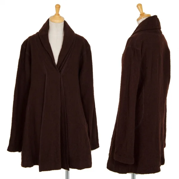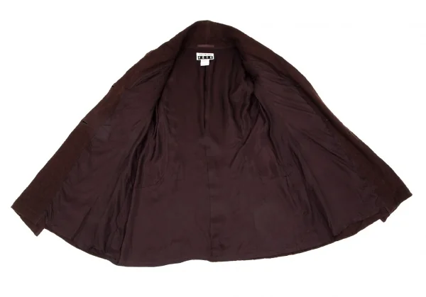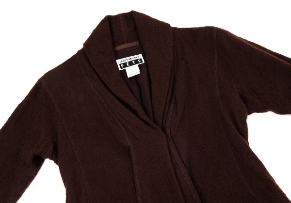 イッセイミヤケ フェットISSEY MIYAKE FETE ウールショールラペルロングジャケット 茶4