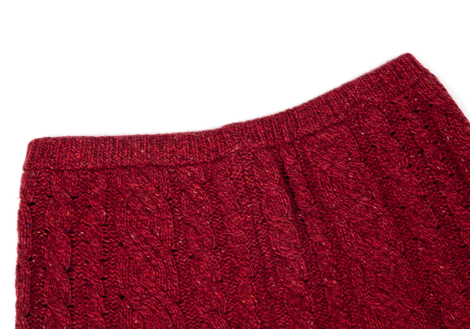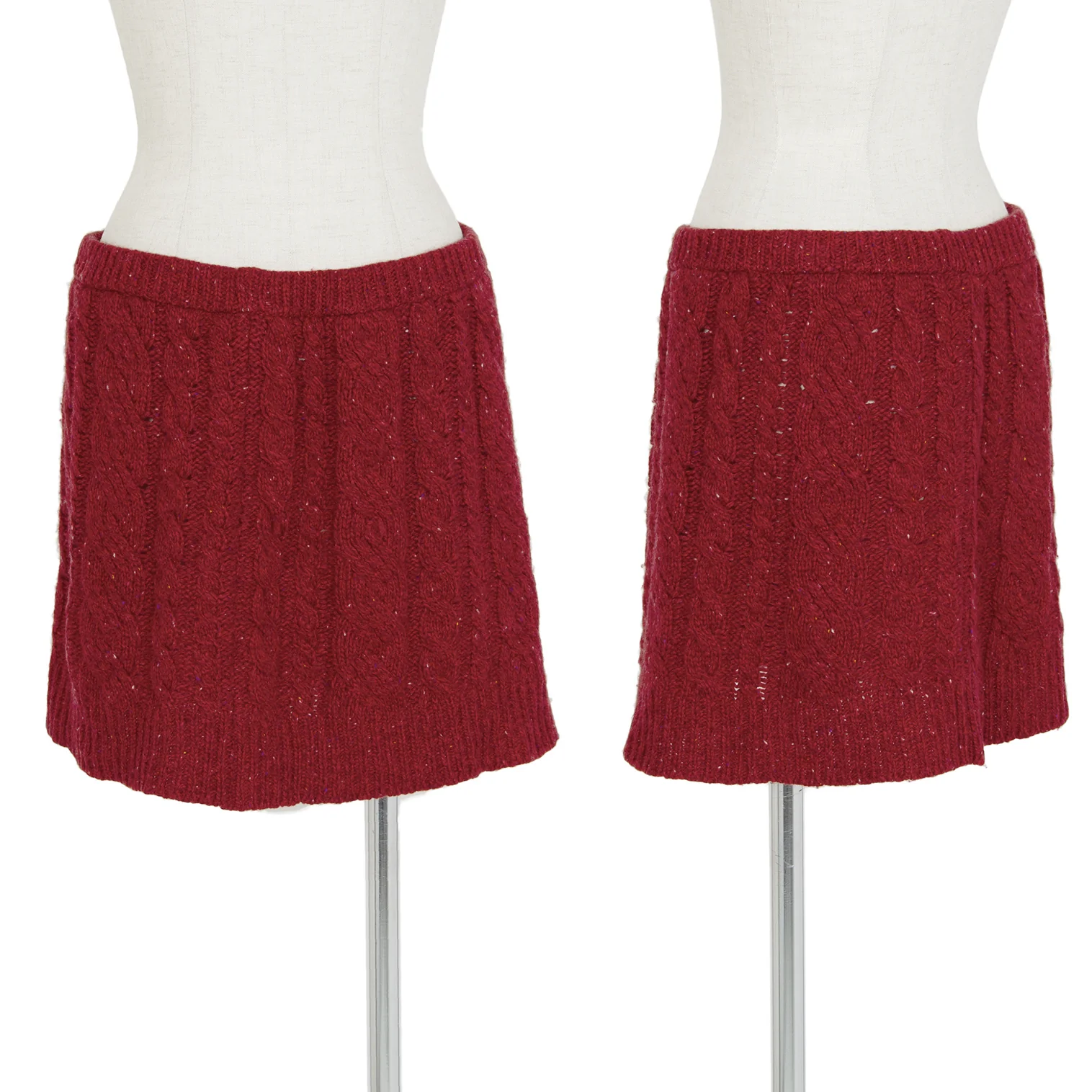 イッセイミヤケISSEY MIYAKE ミックスケーブルニットミニスカート 赤M位