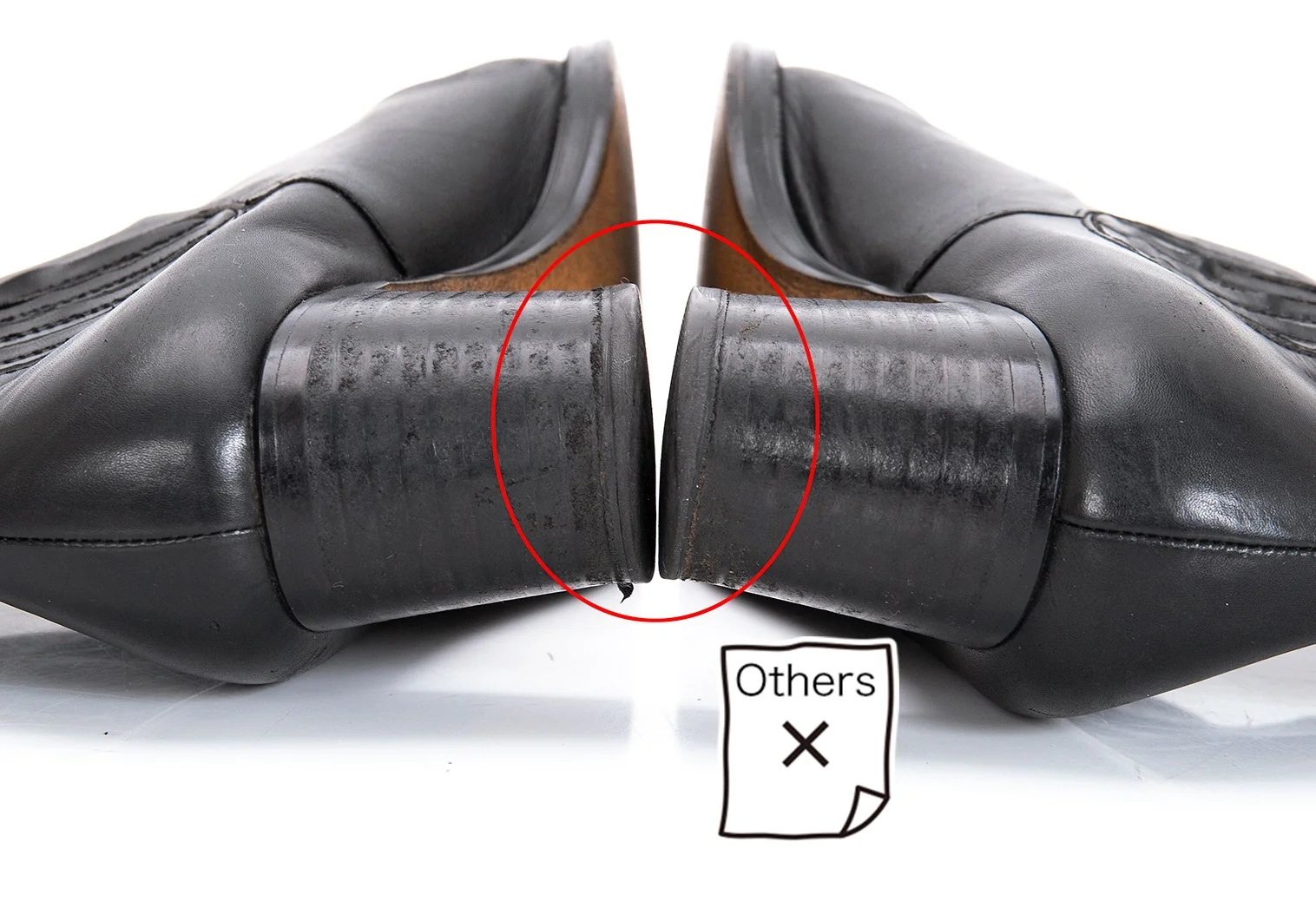 かかと減り・ダメージ、履きジワ、スレがあります。(写真参照)その他、目立った汚れ、ダメージ等なく問題なくご着用いただけます。