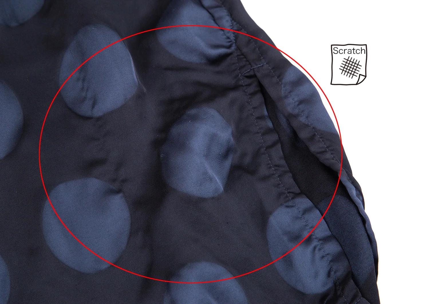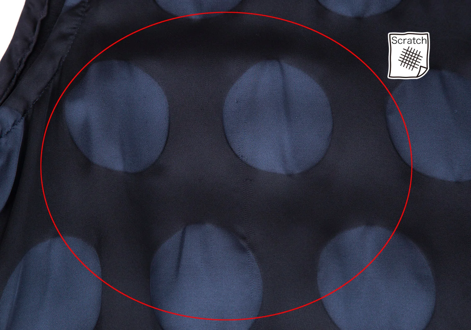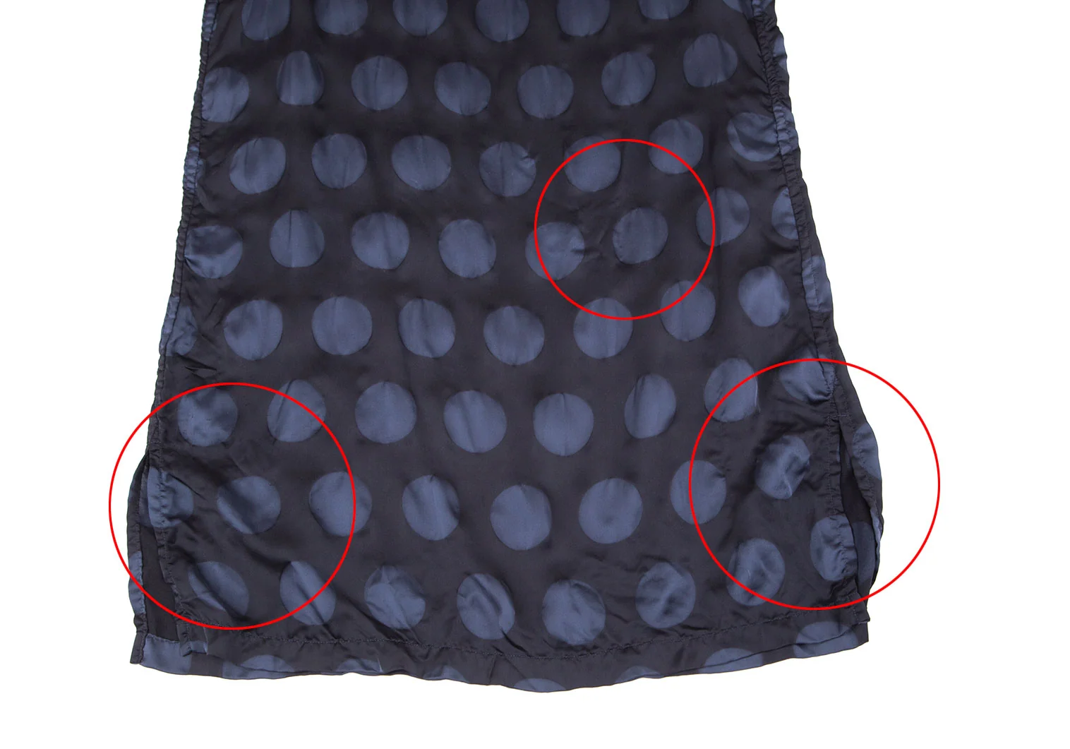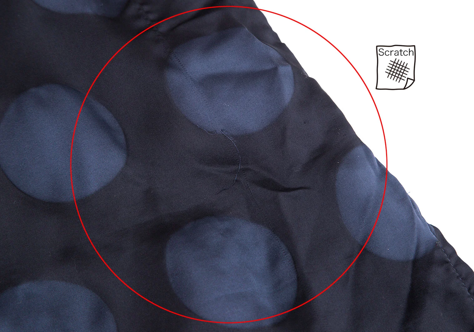 全体に引っ掛け・糸引きが多数あります(写真参照)。その他に目立ったシミ、汚れ等はありません。クリーニング済み