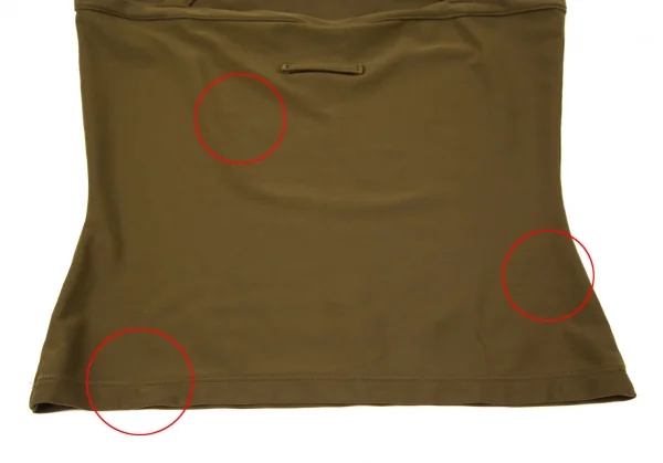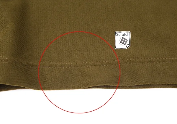 後ろに細い引っ掛けがあります(写真参照)。その他に目立ったシミ、汚れ、ほつれ等なくいい状態です。クリーニング済み