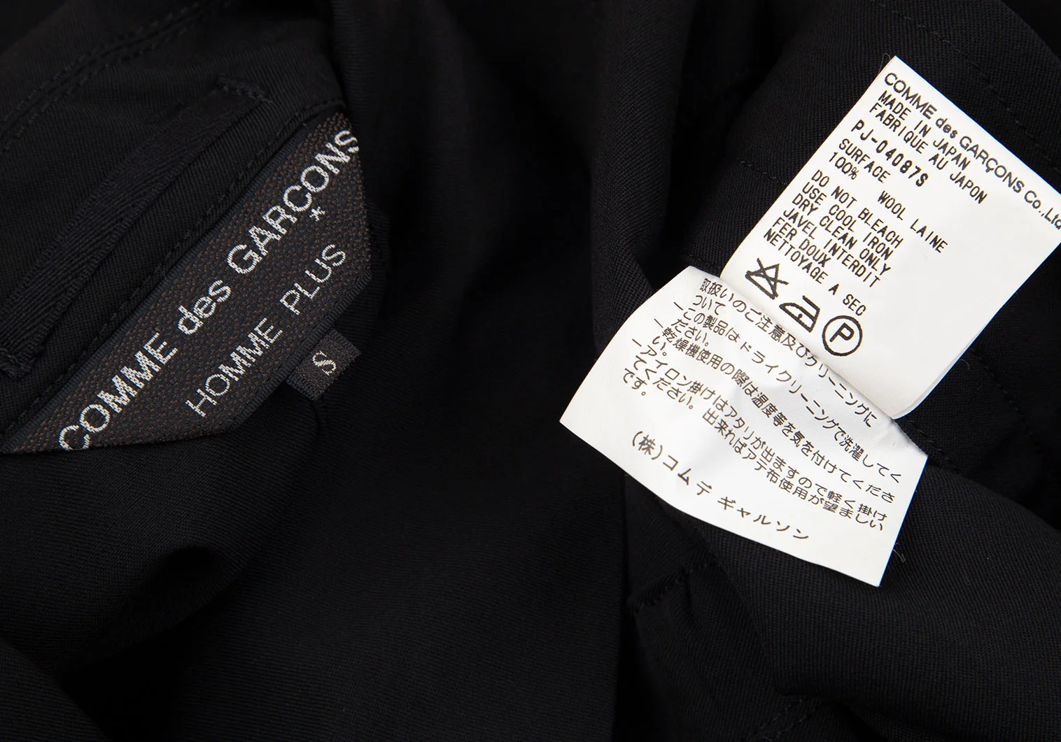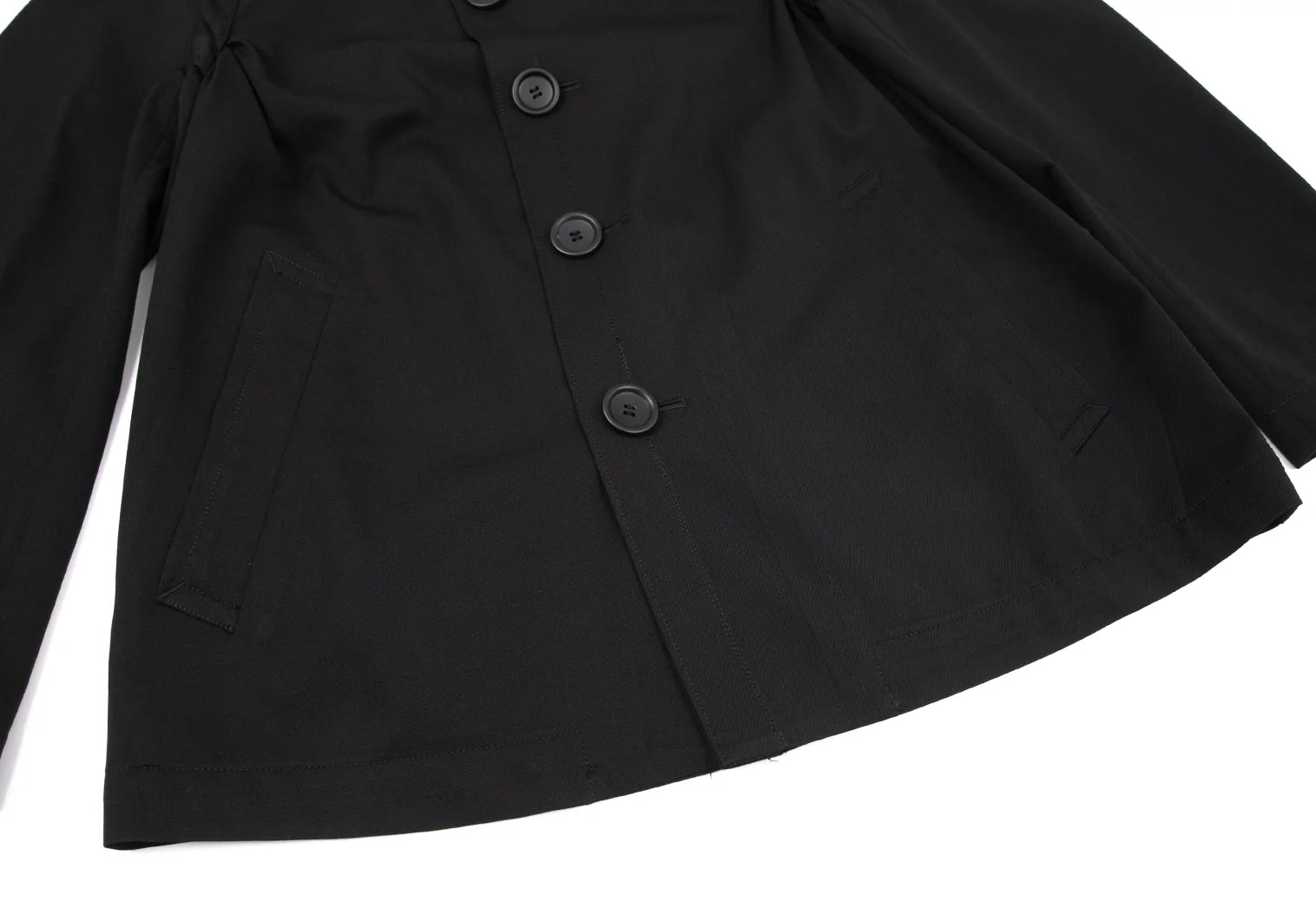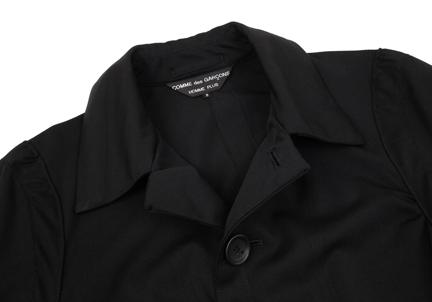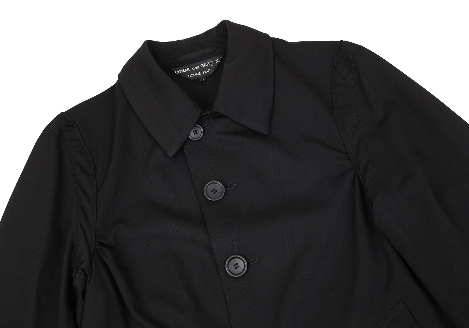 コムデギャルソンオムプリュスCOMME des GARCONS HOMME PLUS ウールギャバサイドギャザーステンカラージャケット 黒S