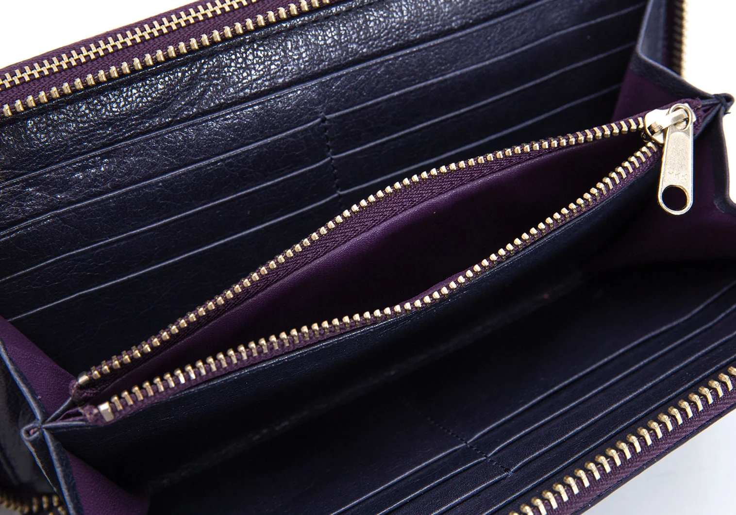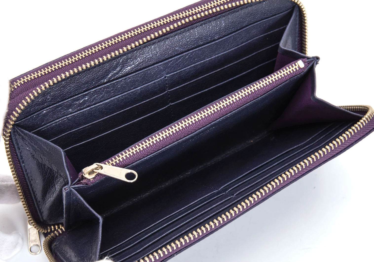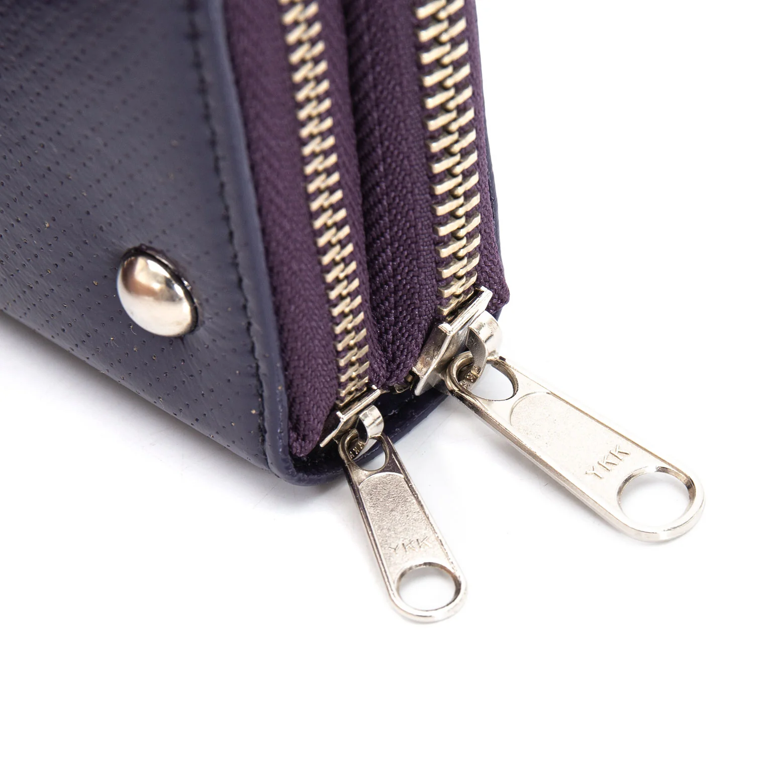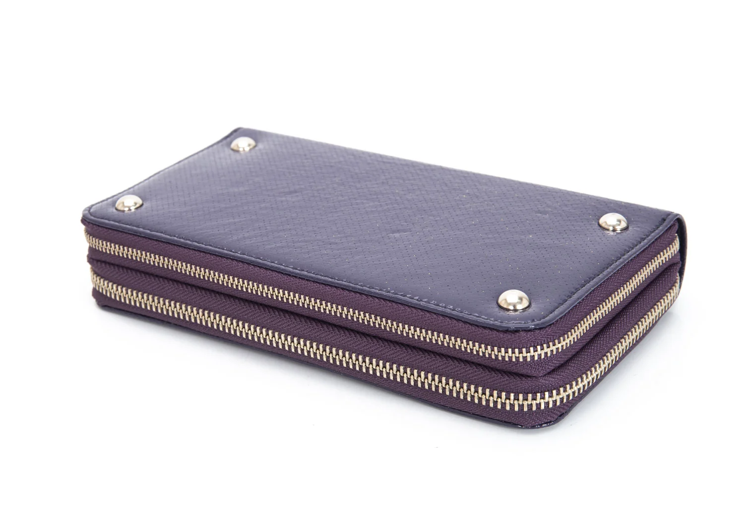 リミフゥLIMI feu パンチングエナメルレザーダブルジップウォレット 長財布 紫