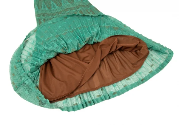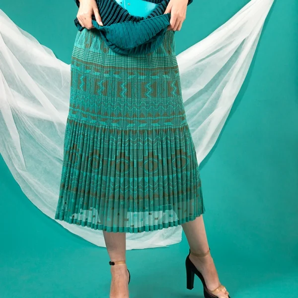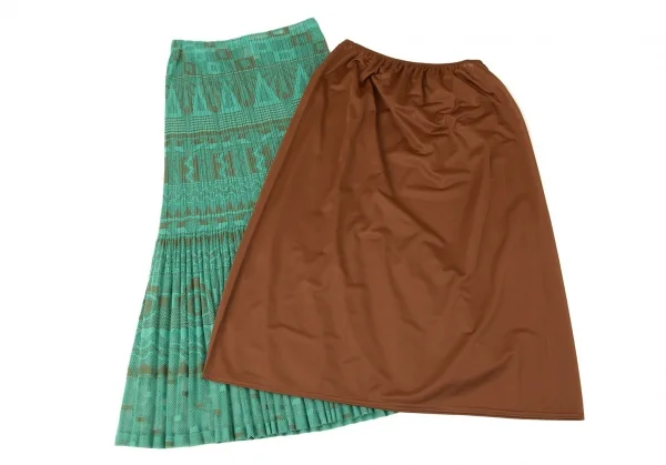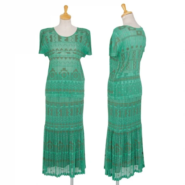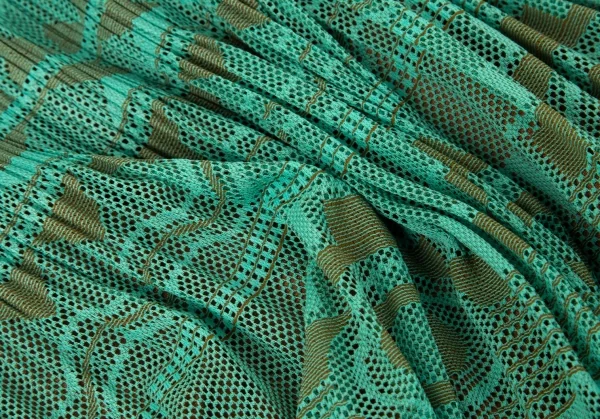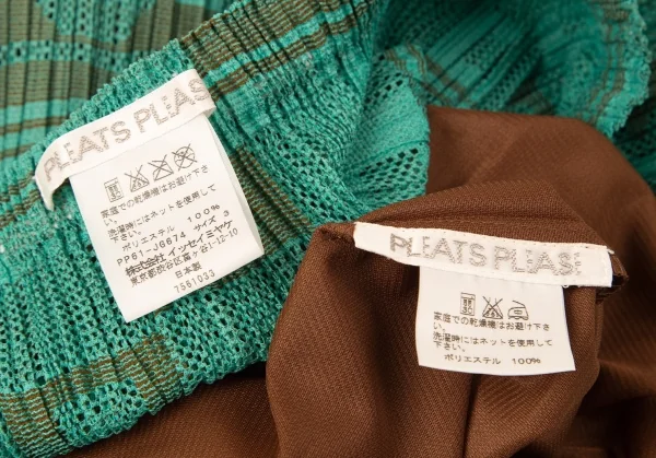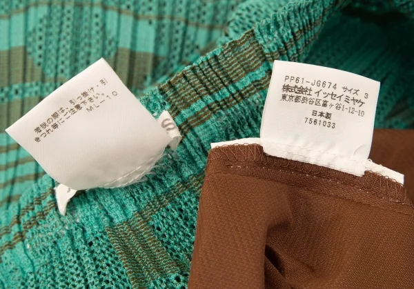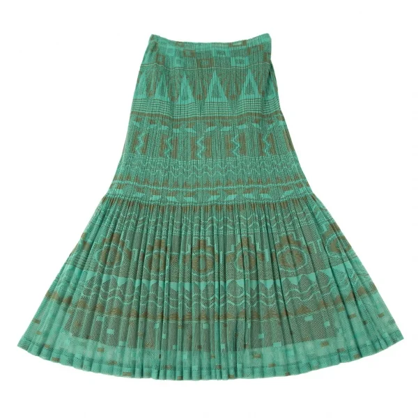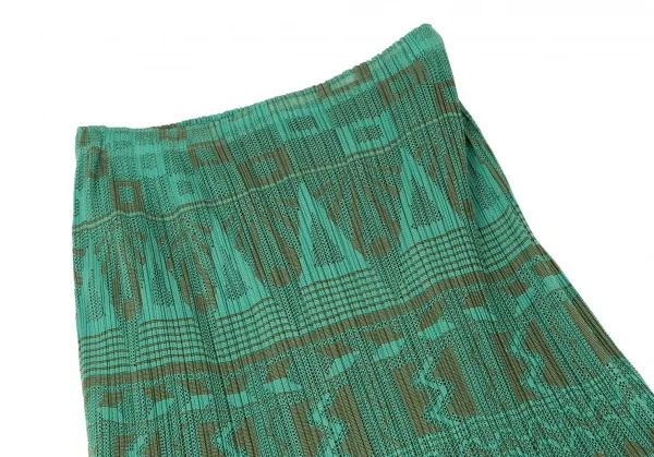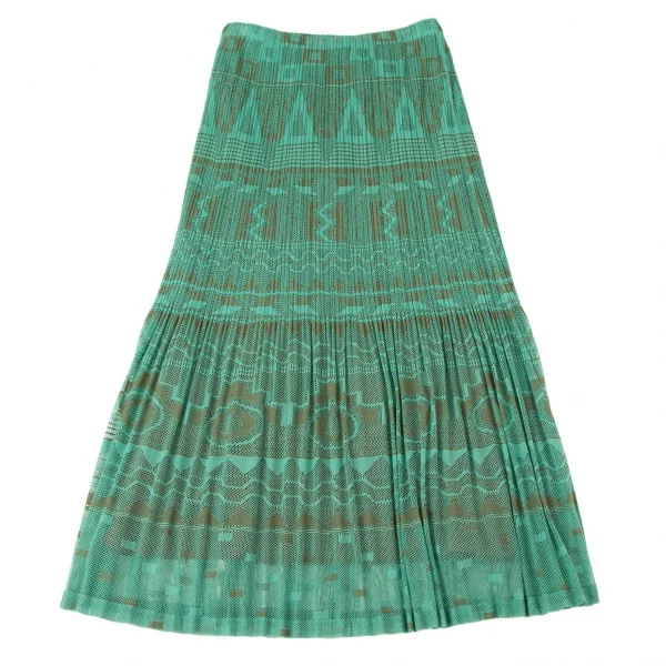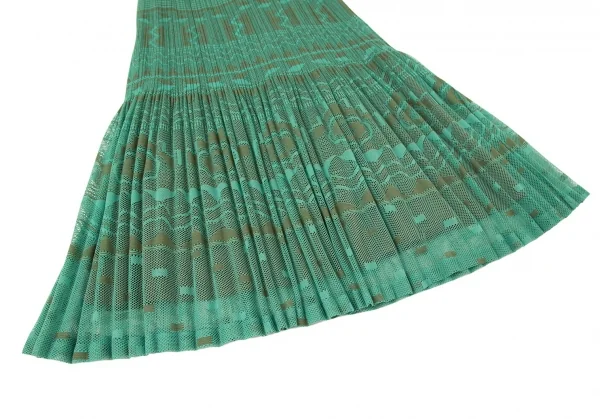 プリーツプリーズPLEATS PLEASE ネイティブボーダーメッシュプリーツスカート 緑3