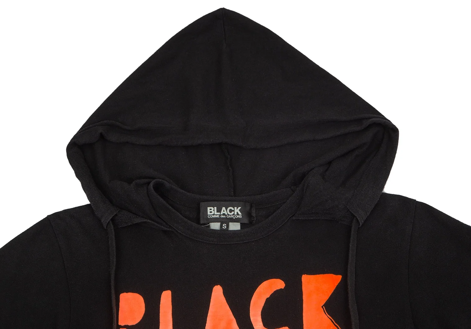 ブラックコムデギャルソンBLACK COMME des GARCONS ロゴプリントフード付きTシャツ 黒オレンジS