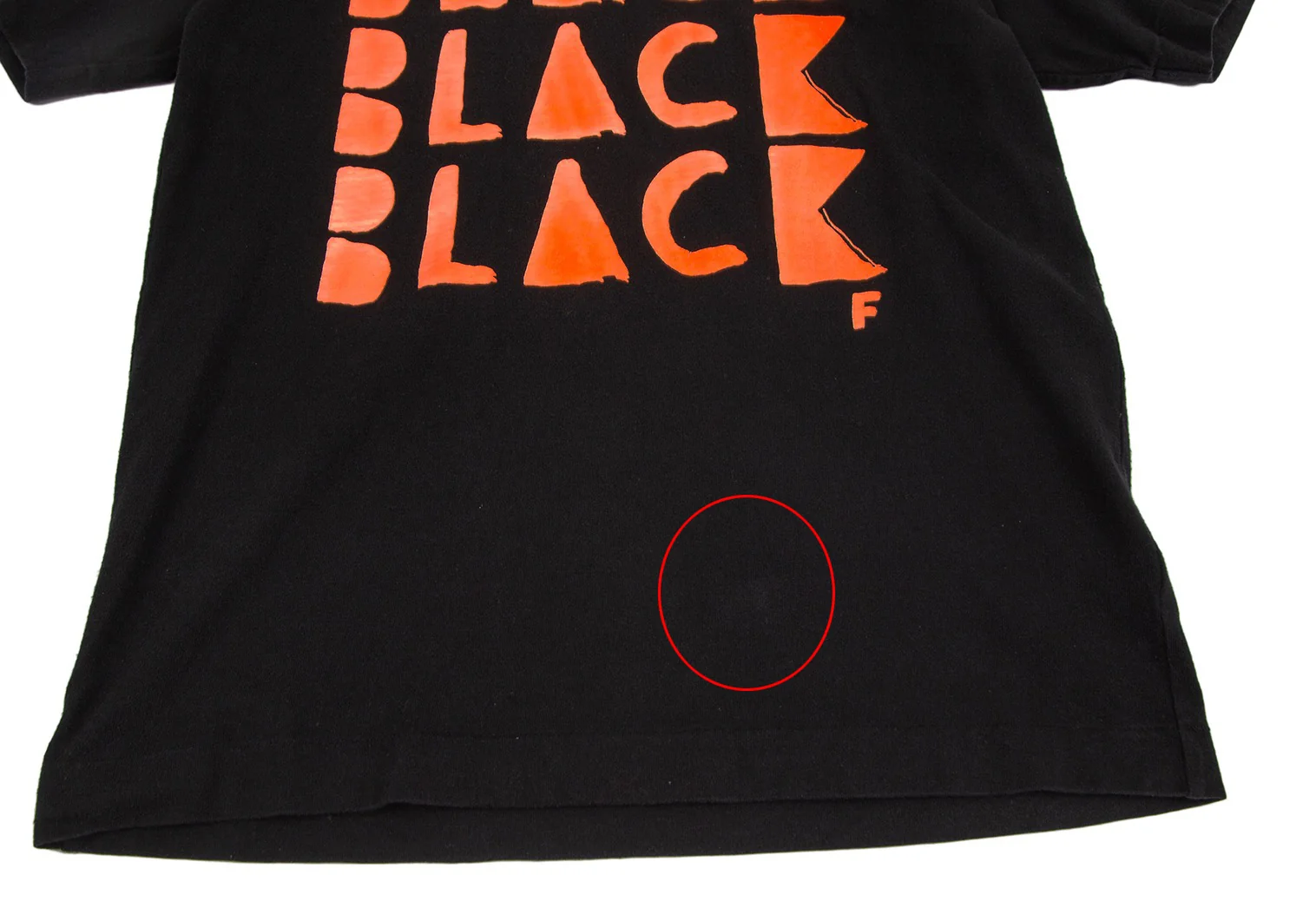 全体的に毛羽立ち・着用感あり。首周り・前裾に毛羽立ち・色褪せ、プリント所々に劣化があります(画像参照)。その他目立ったシミ、汚れはありません。クリーニング済み