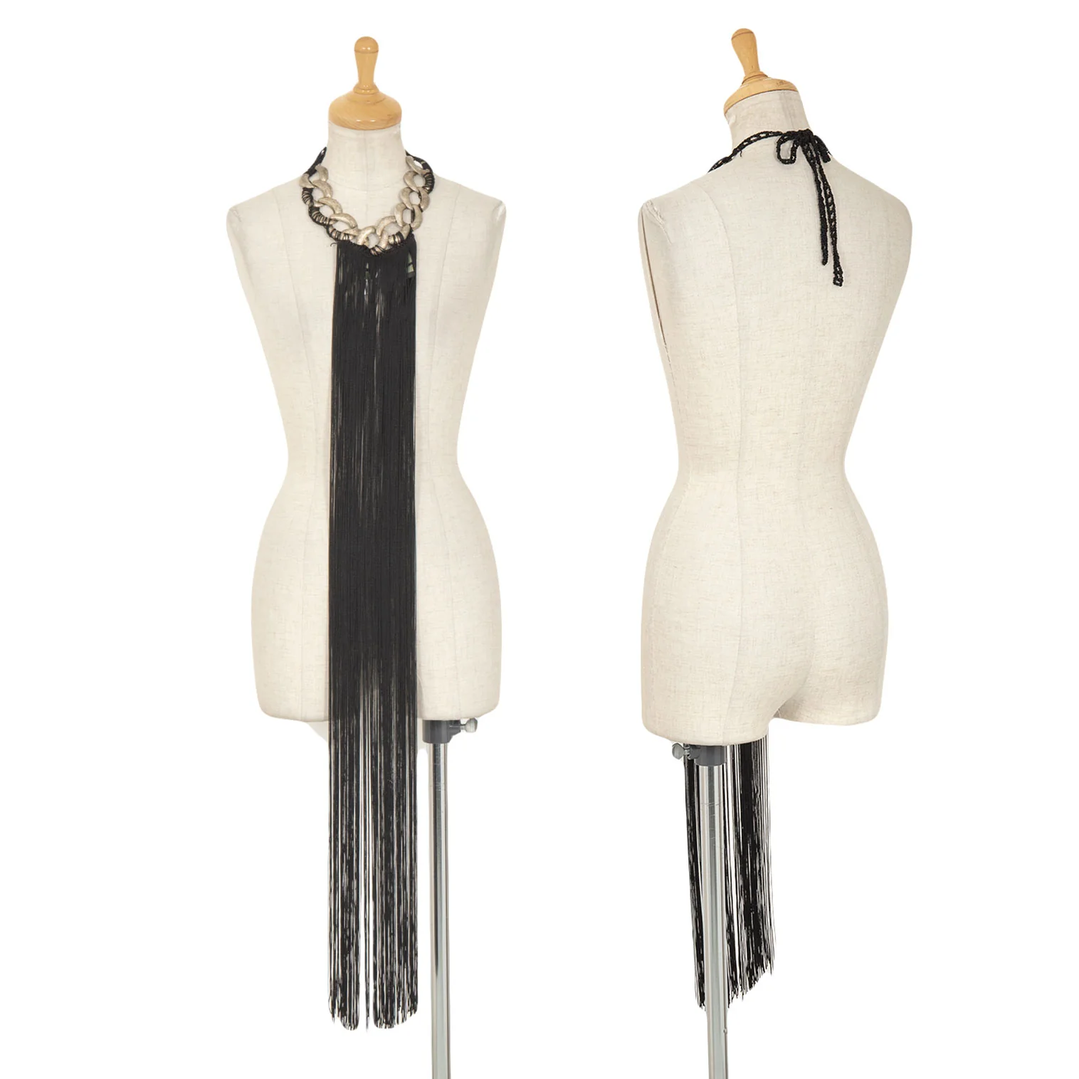 ジャンポールゴルチエ マイユファムJean Paul GAULTIER MAILLE FEMME チェーンフリンジチョーカー シルバー黒XS