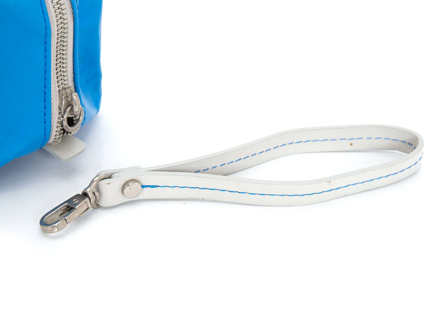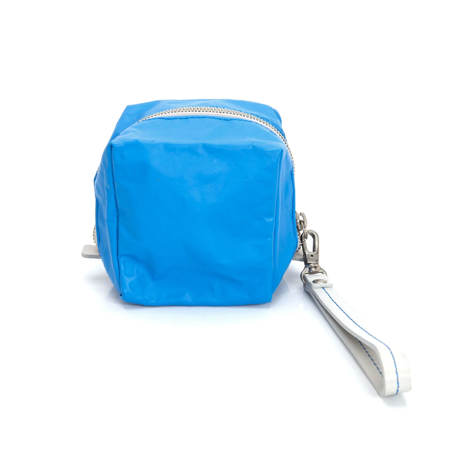 プリーツプリーズPLEATS PLEASE コーティングプリントキューブポーチ 水色