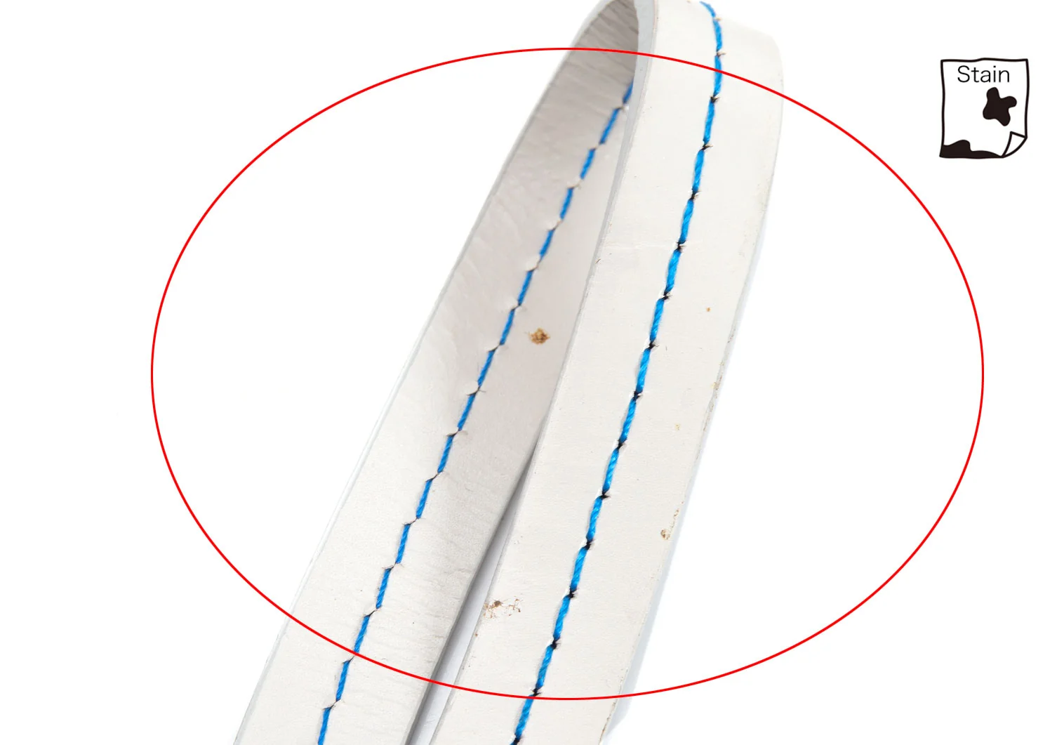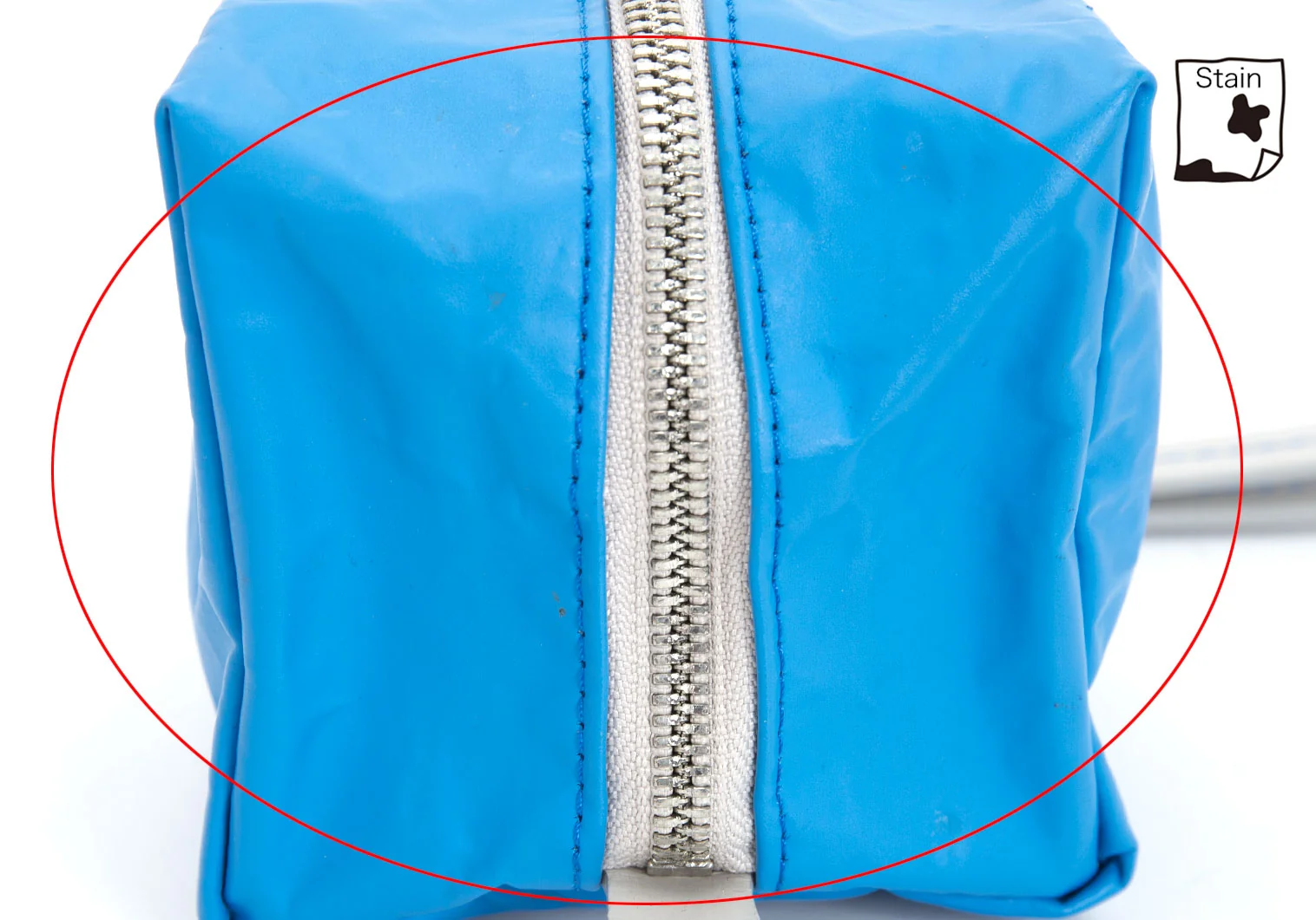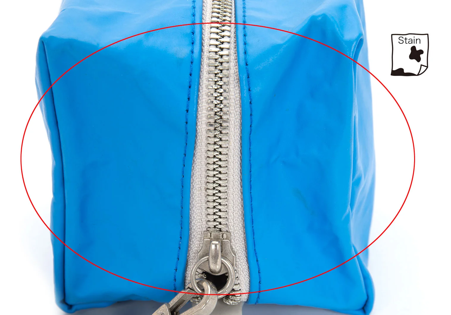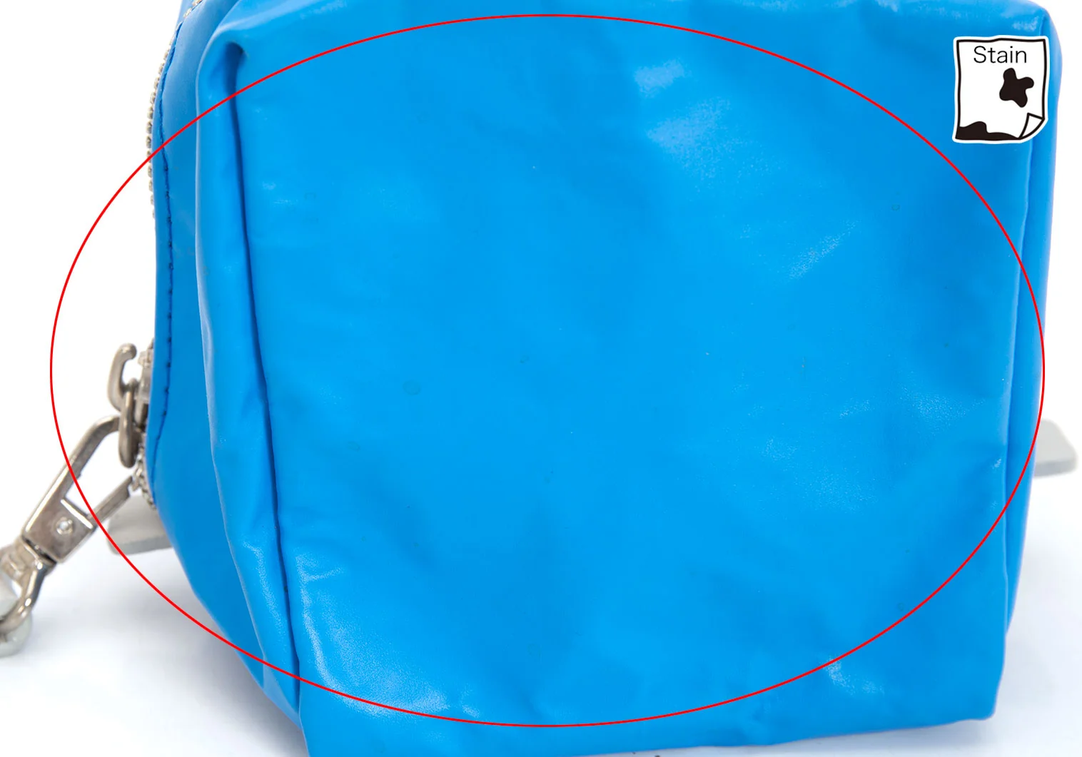 本体全体に薄シミ、裾レザーパーツ・ストラップに汚れがあります(写真参照)。その他に目立った傷はありません。