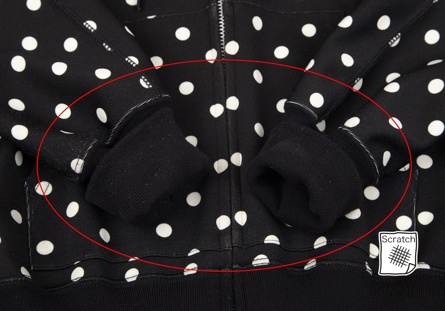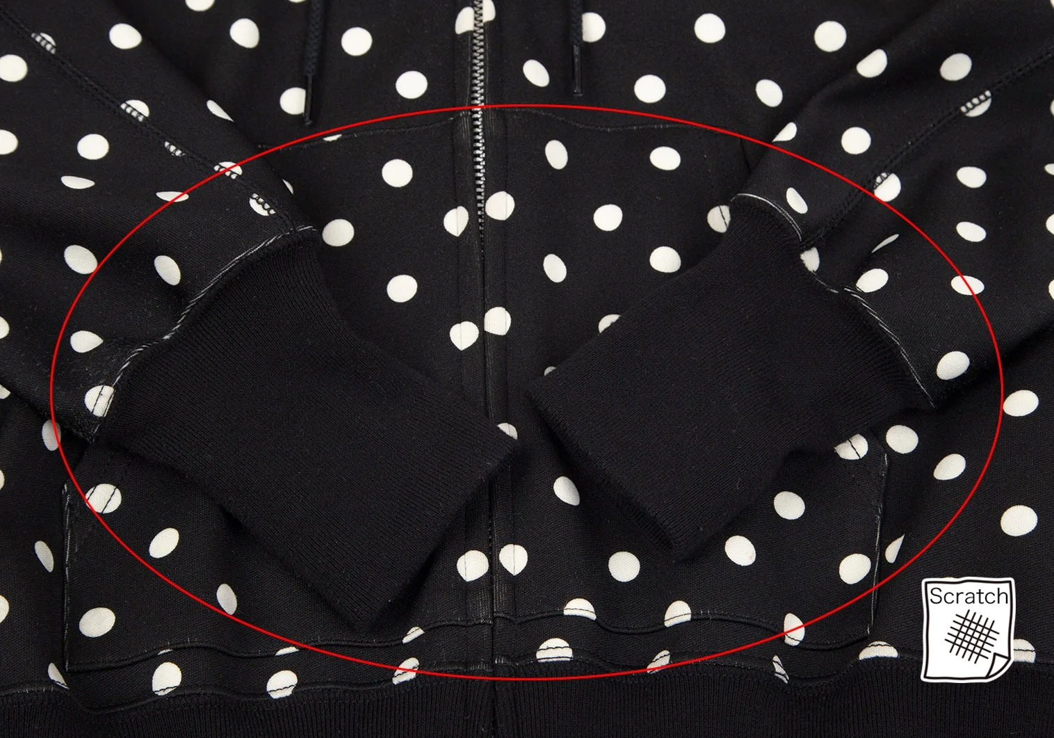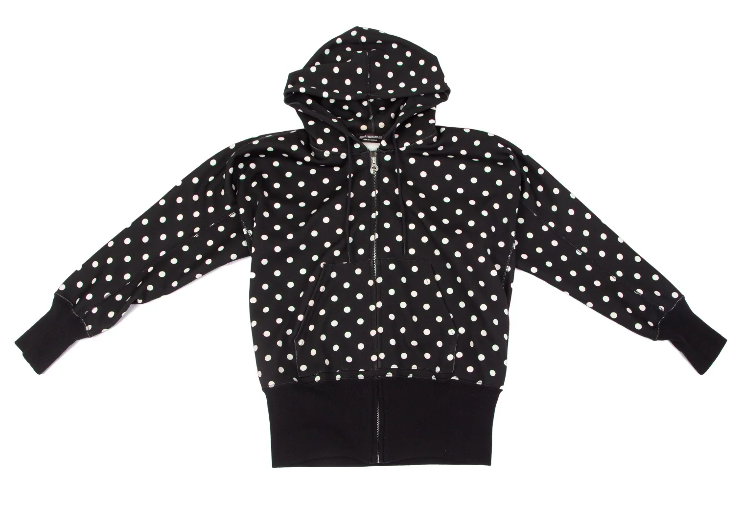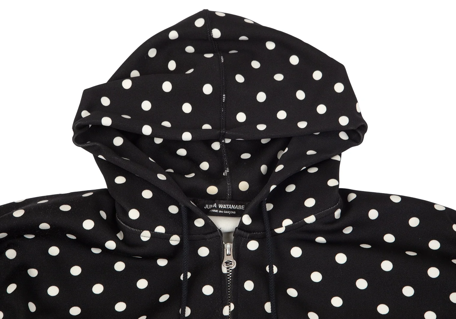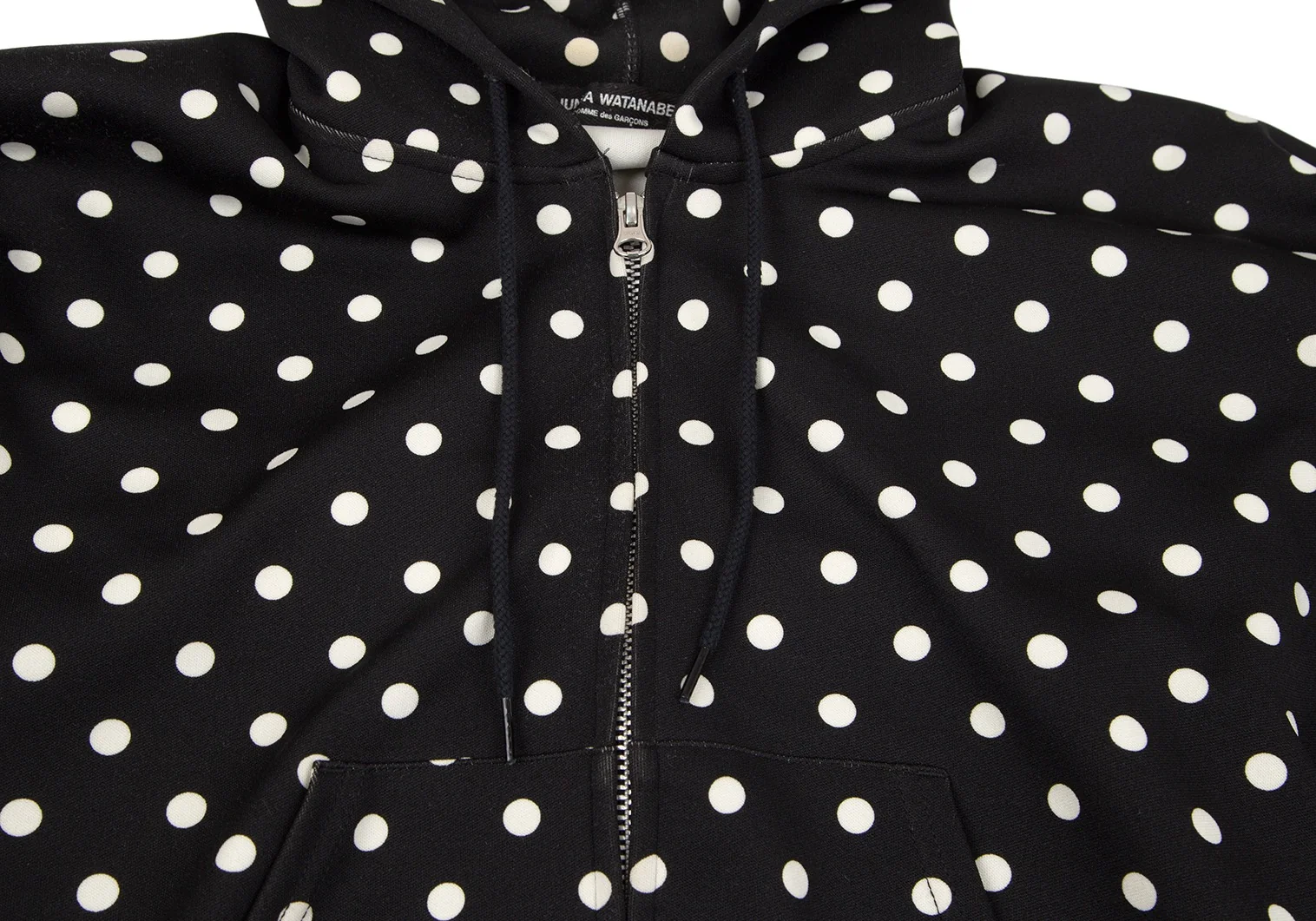 ジュンヤワタナベ コムデギャルソンJUNYA WATANABE COMME des GARCONS ドットプリントバックドレープジップアップドルマンパーカー 黒M位