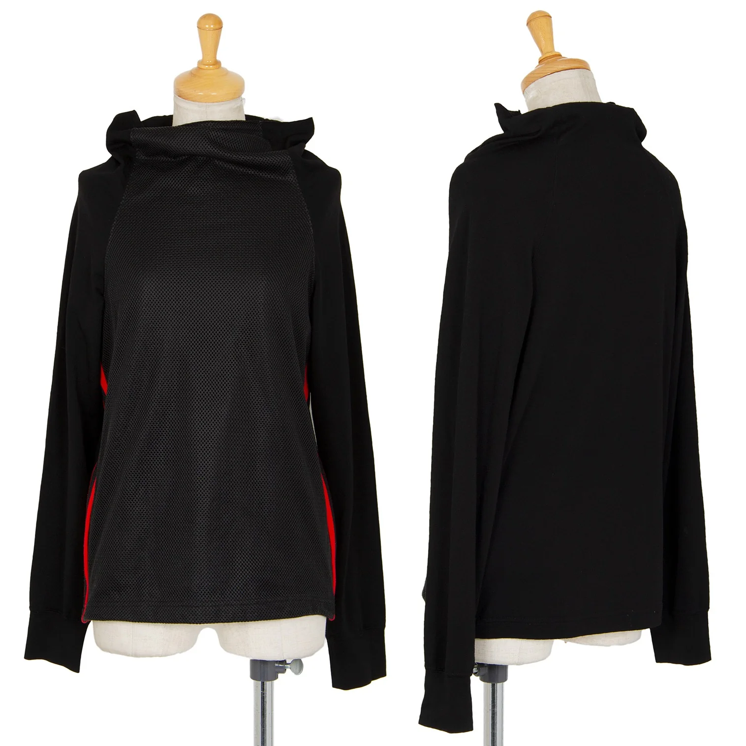 コムデギャルソンCOMME des GARCONS フロントメッシュ切替ウールポリハイネックカットソー 黒M位