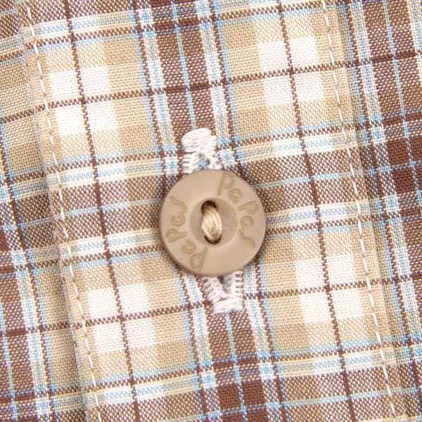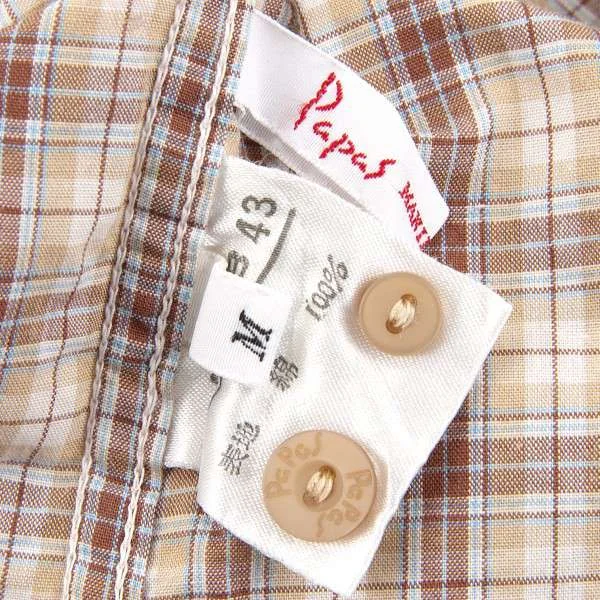 パパスPapas  チェックボタンダウン長袖シャツ ベージュM