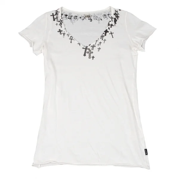 ルグランブルー L.G.B. ネッククロスプリントVネックTシャツ 白1