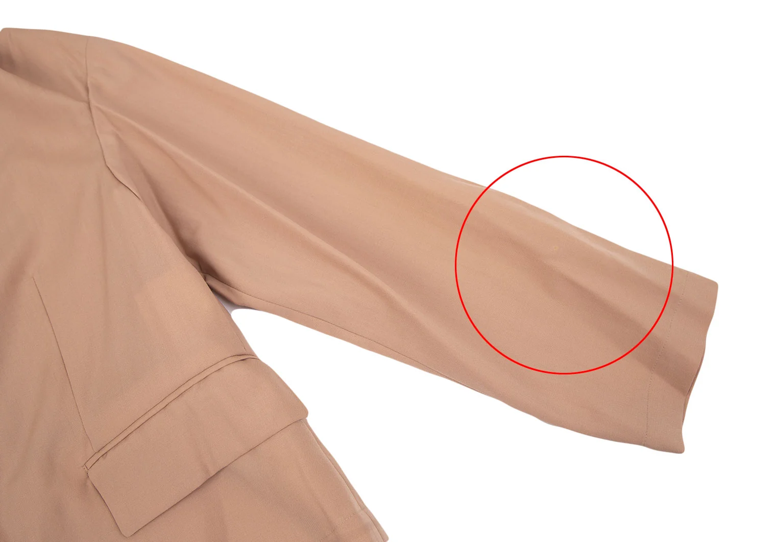 左袖先に汚れがあります(写真参照)。その他に目立ったシミ、汚れ、ほつれ等なくいい状態です。クリーニング済み
