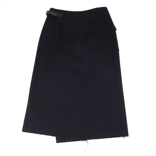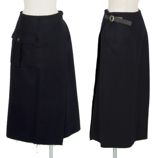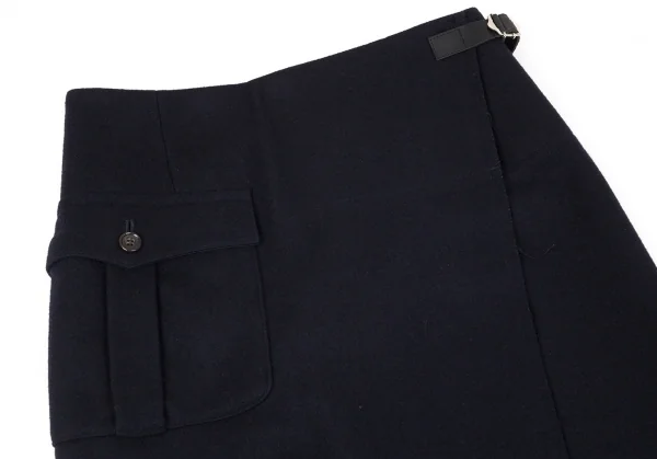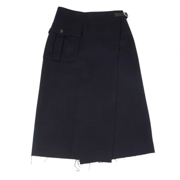 トリコ コムデギャルソンtricot COMME des GARCONSウールフロントポケットデザインラップスカート 紺M