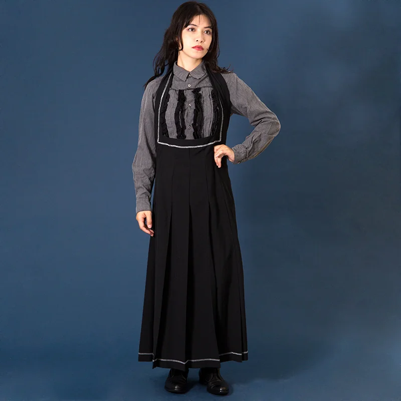 ローブドシャンブル コムデギャルソンrobe de chambre COMME des GARCONSウールホルターネックプリーツスカート 黒M