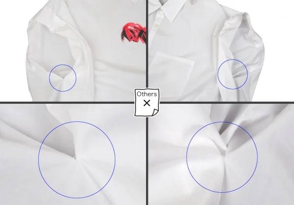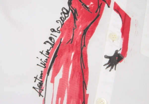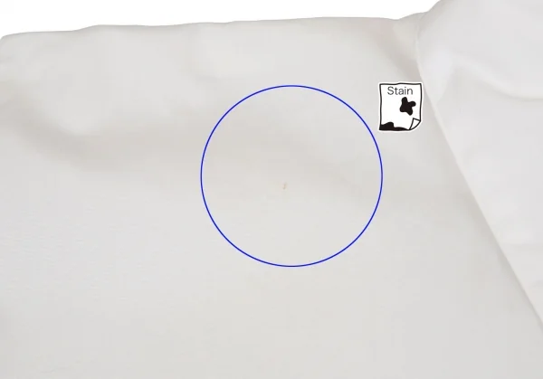 2019A/W。若干の透け感があります。襟裏に薄シミ・右肩に点シミ、脇下・裾切替縫い目にダメージがあります(写真参照)。その他に目立ったシミ、汚れ、ほつれ等はありません。クリーニング済み