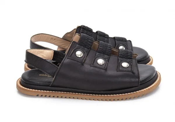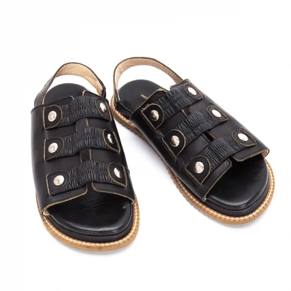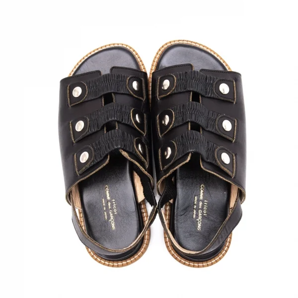 トリココムデギャルソンtricot COMME des GARCONS ベルトデザインレザーフラットサンダル 黒23.5