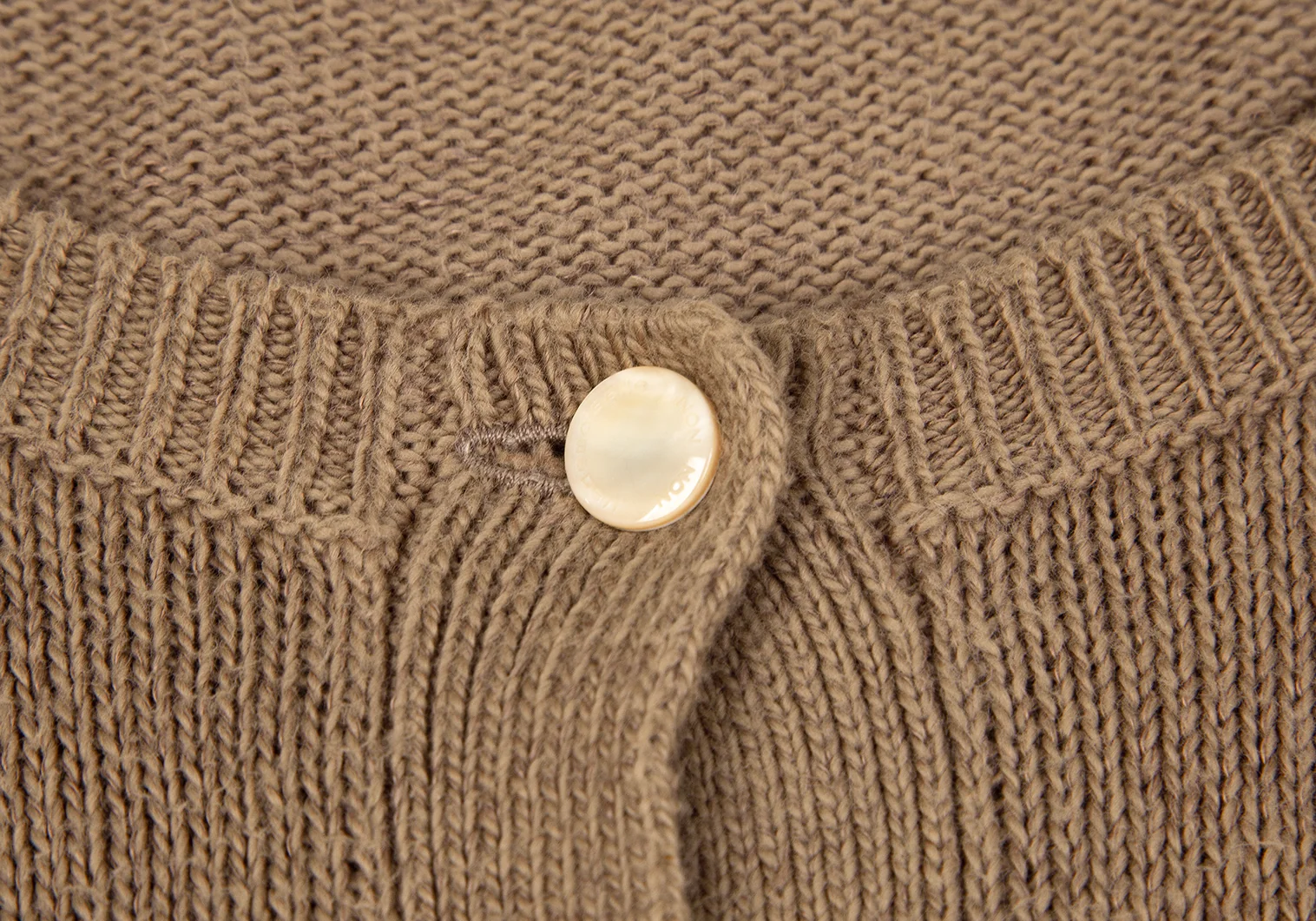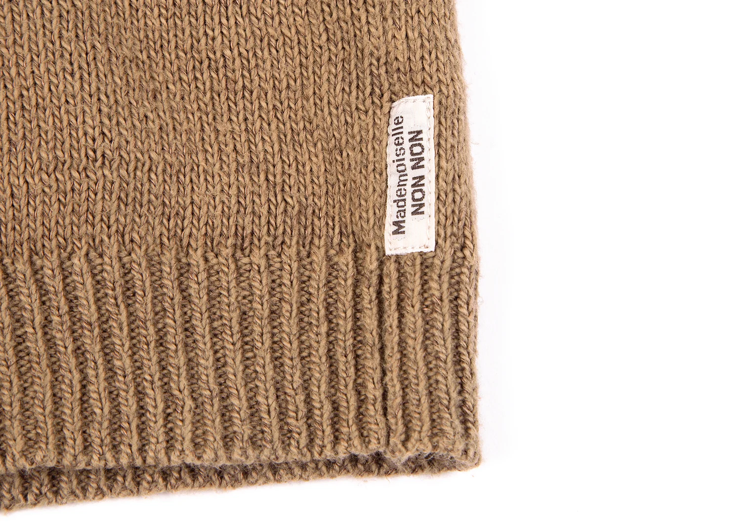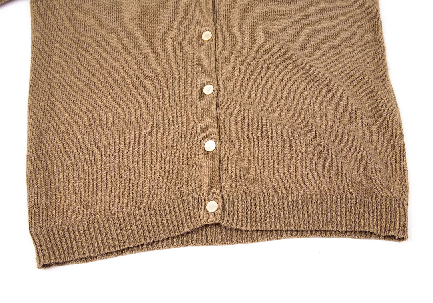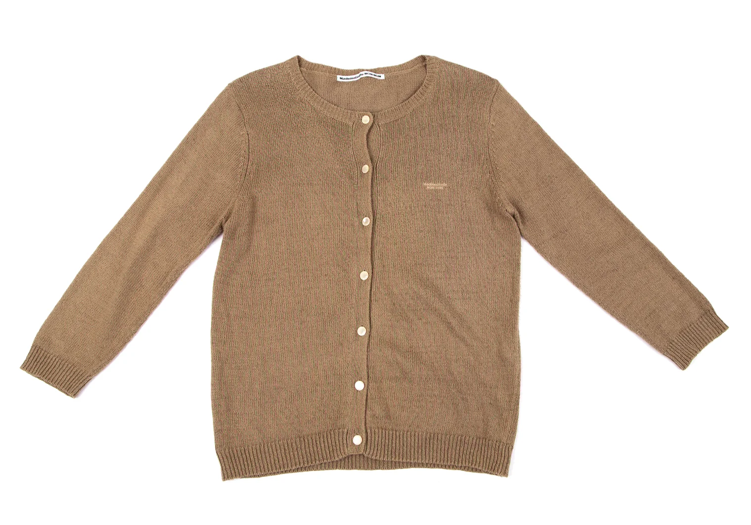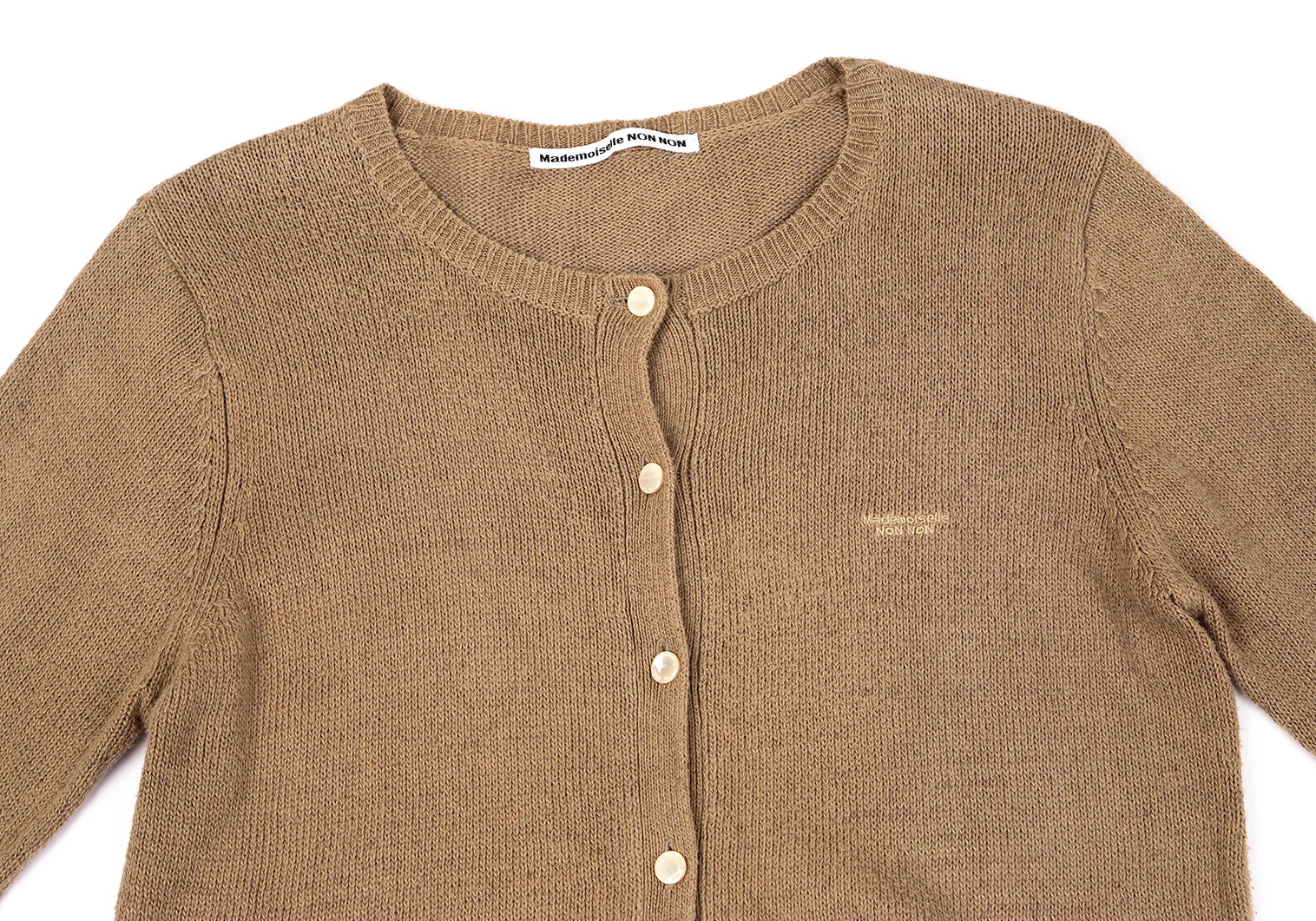 マドモアゼルノンノンMademoiselle NON NONコットンリネンワンポイントロゴ刺繍カーディガン モカM