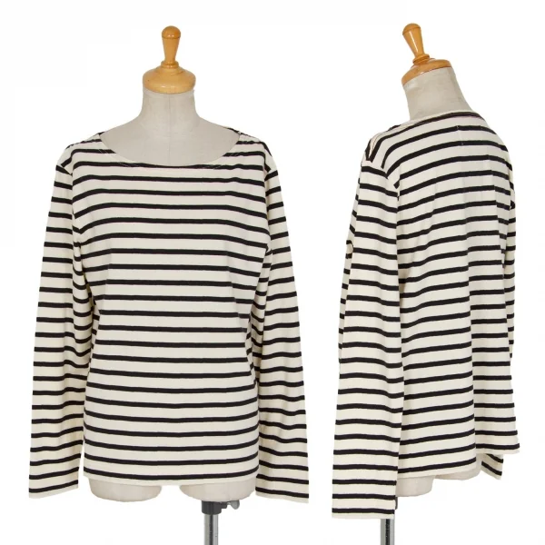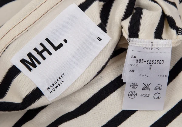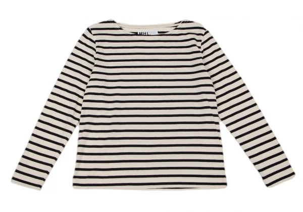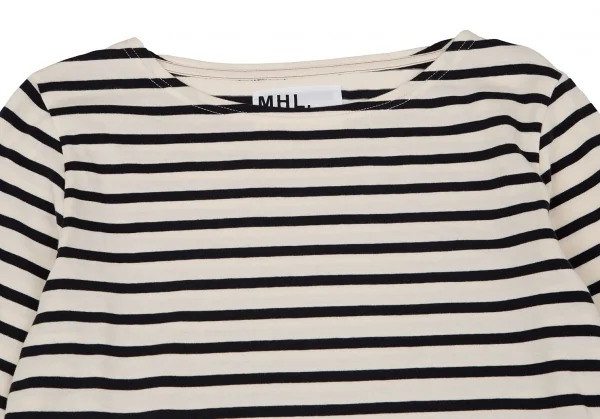 マーガレットハウエルMHL ボートネックボーダーカットソー 白 アイボリー2