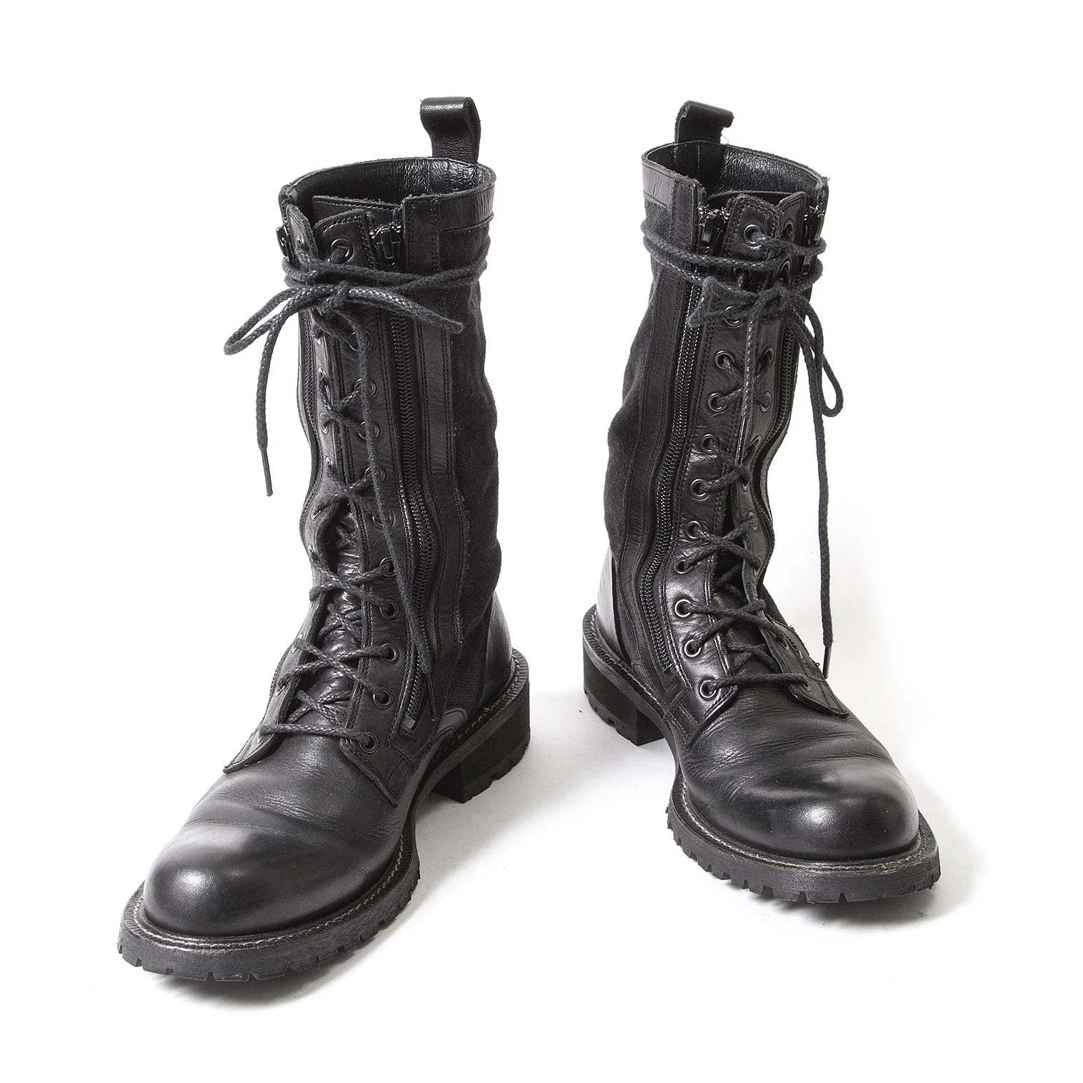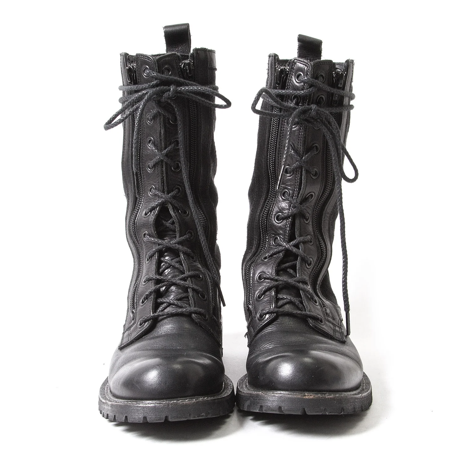ワイズY's キャンバス切替ジップアップコンバットブーツ 黒3(23.5位)
