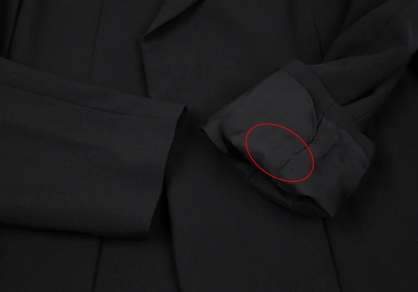 肩パッドあり。右袖裏地に引っ掛けがあります。(画像参照)その他目立ったシミ、汚れ、ほつれ等なくいい状態です。クリーニング済み