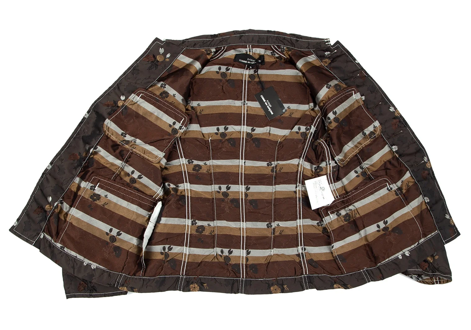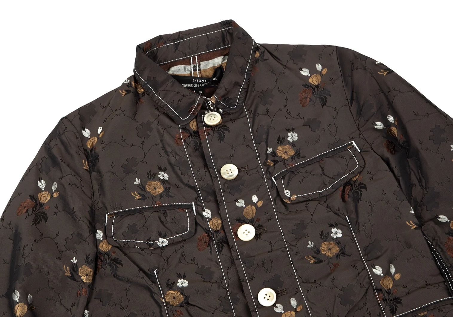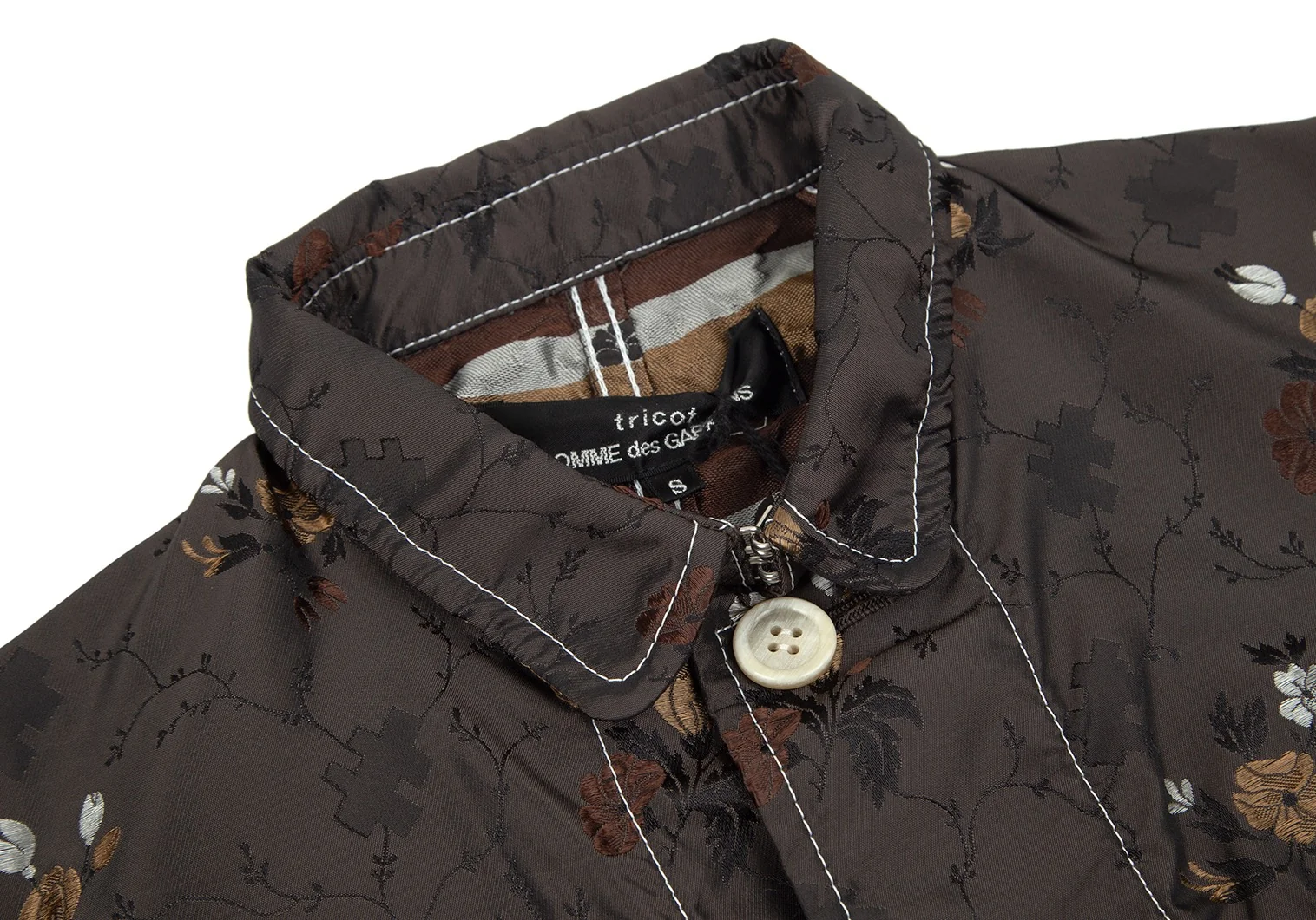 新品!トリココムデギャルソンtricot COMME des GARCONS フラワージャガードホワイトステッチジャケット こげ茶S