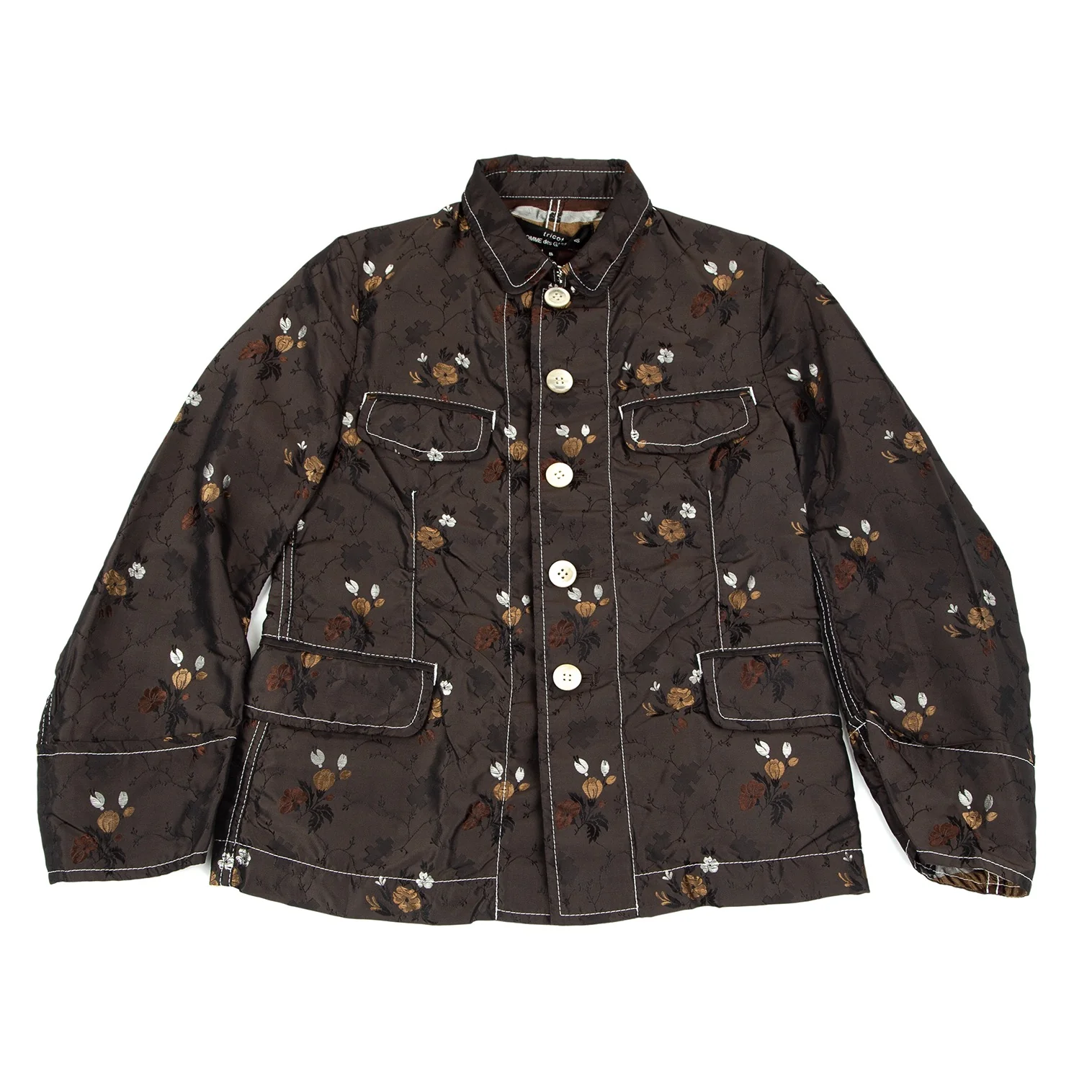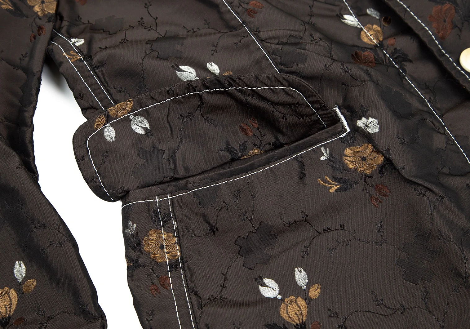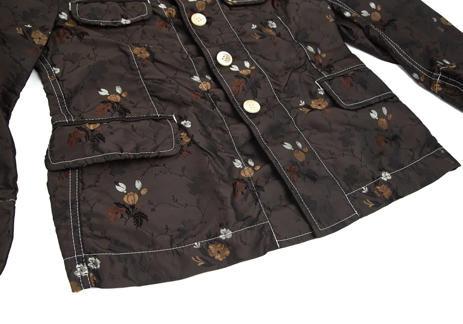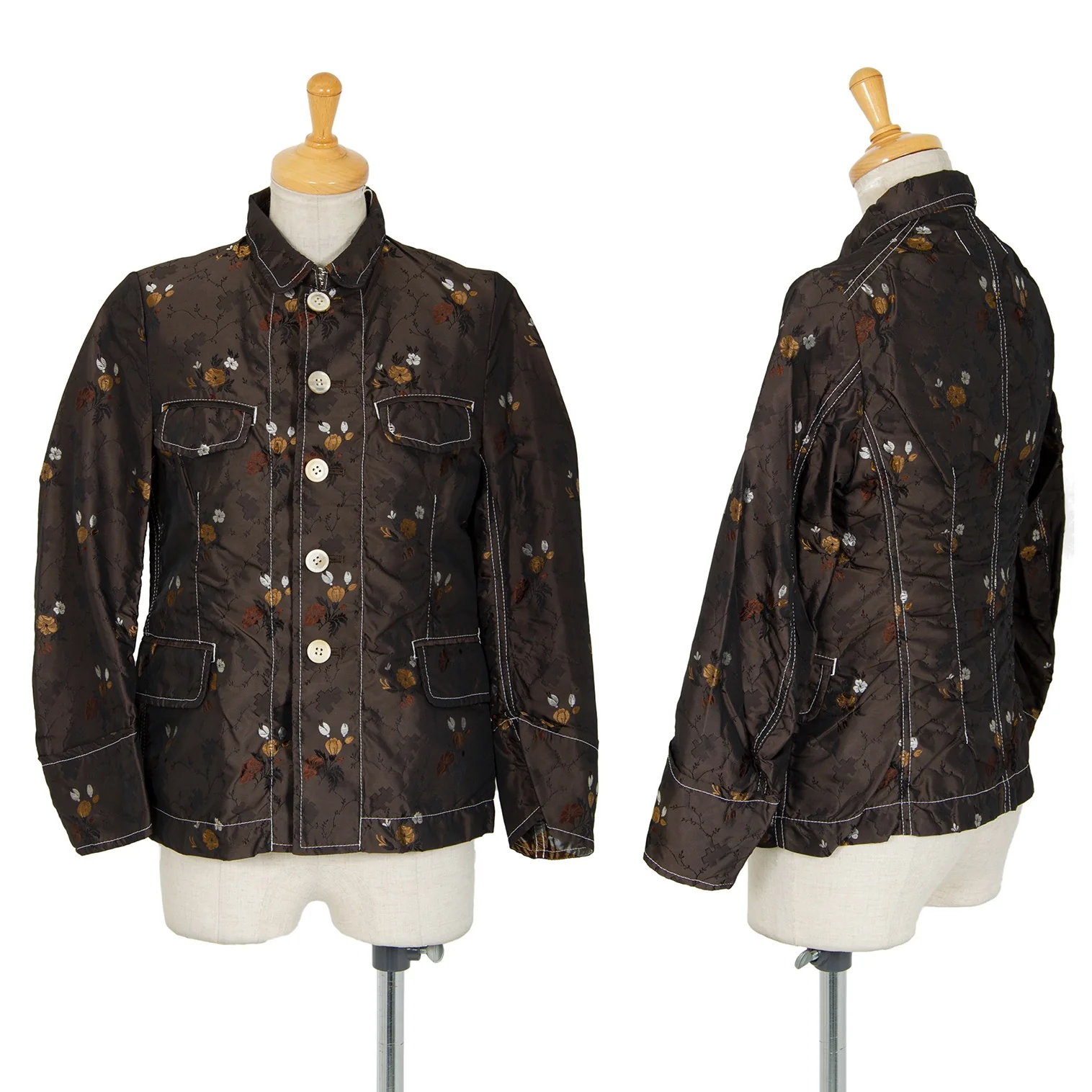 新品!トリココムデギャルソンtricot COMME des GARCONS フラワージャガードホワイトステッチジャケット こげ茶S