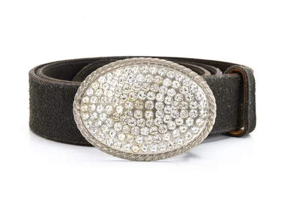 コムデギャルソン オムプリュスCOMME des GARCONS HOMME PLUS ラインストーンバックルスウェードベルト グレーカーキ89