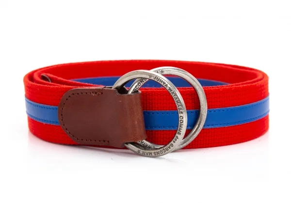 ジュンヤワタナベマン コムデギャルソンJUNYA WATANABE MAN COMME des GARCONS レザーラインキャンバスダブルリングベルト 赤青