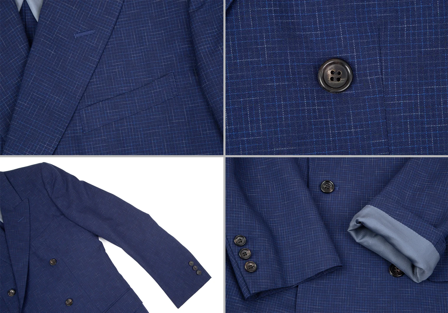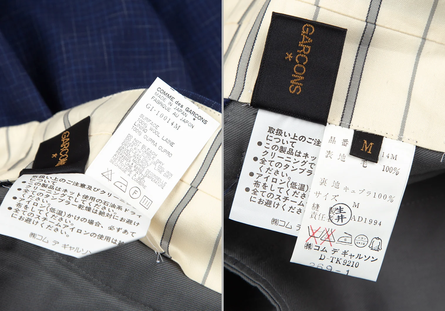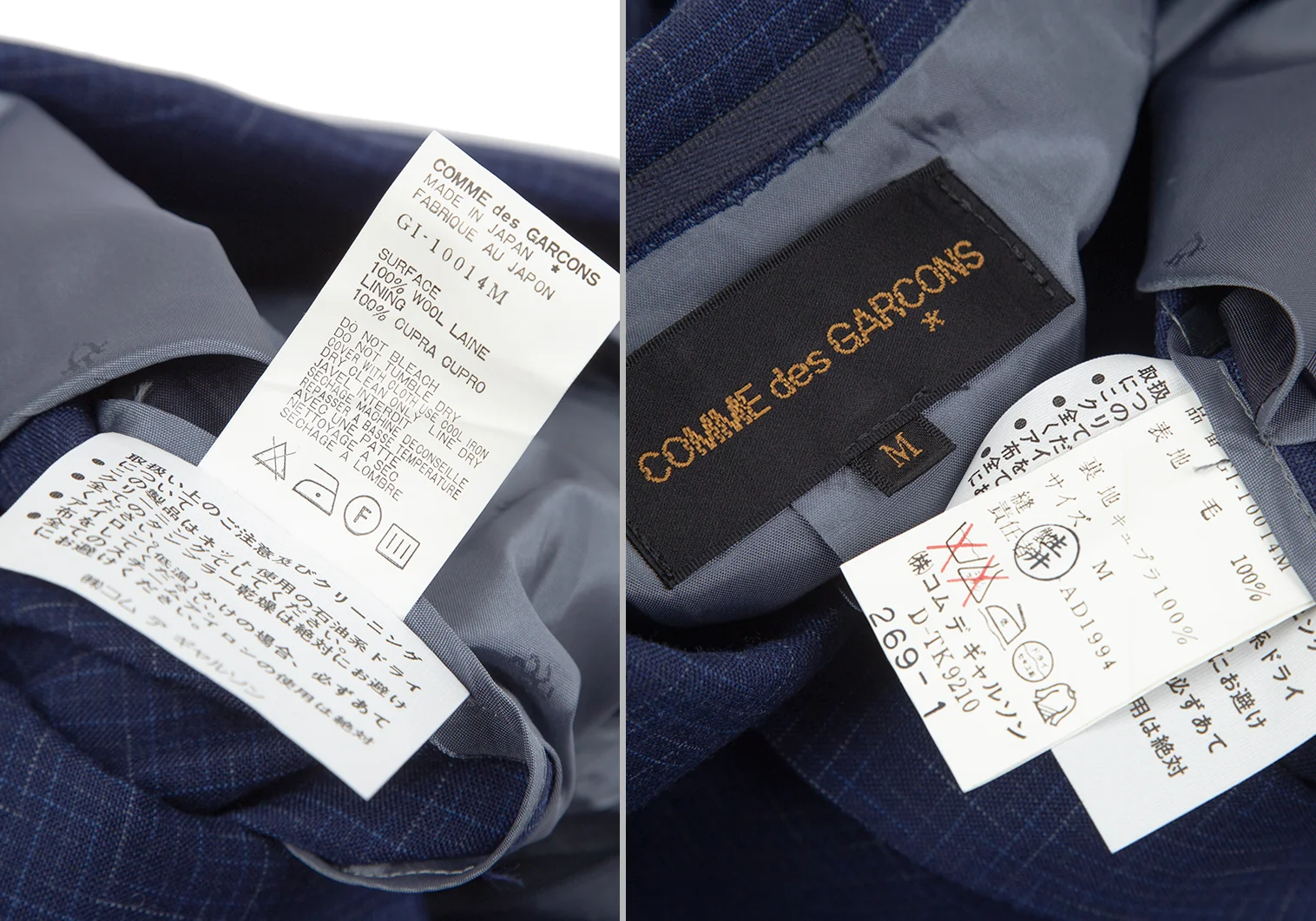 コムデギャルソンCOMME des GARCONSウール乱格子ダブルセットアップスーツ 青M