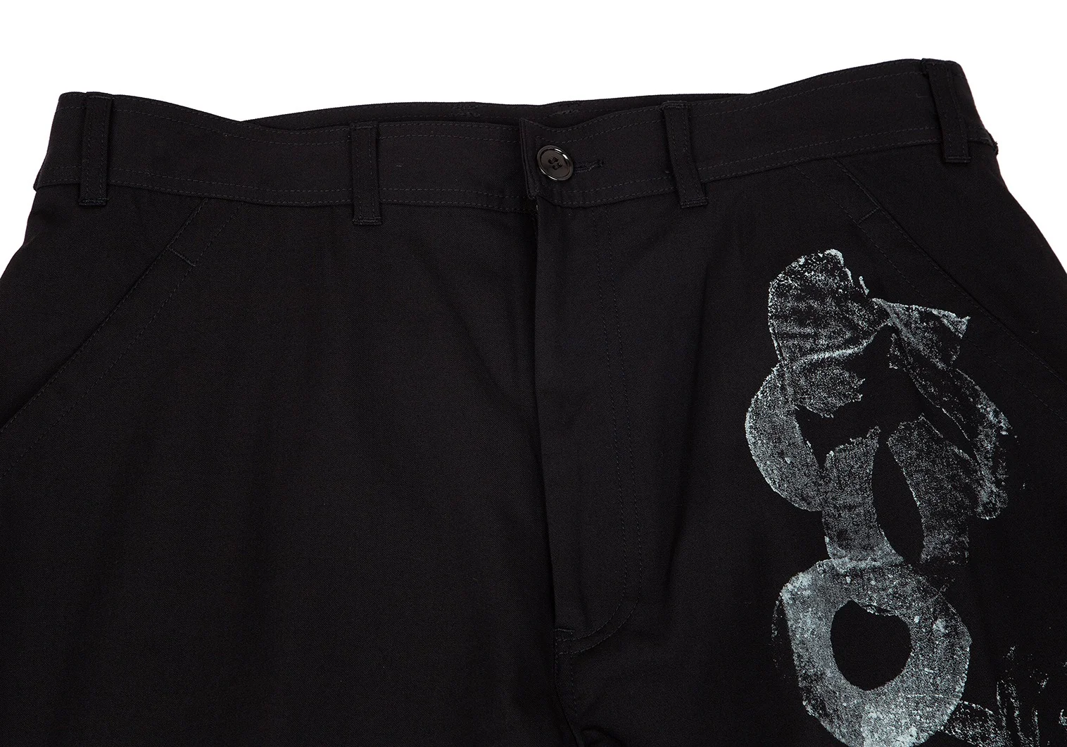 コムデギャルソンCOMME des GARCONS ウールギャバグラフィックプリントワークパンツ 黒M位