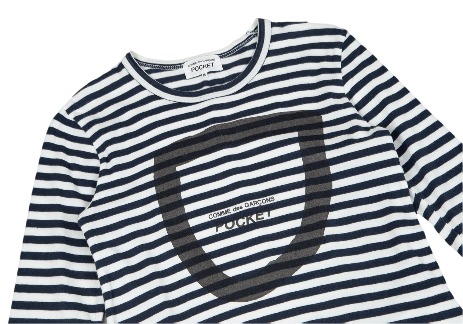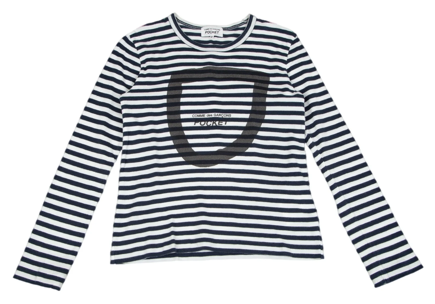 コムデギャルソン ポケットCOMME des GARCONSPOCKET プリントボーダーカットソー 白紺M
