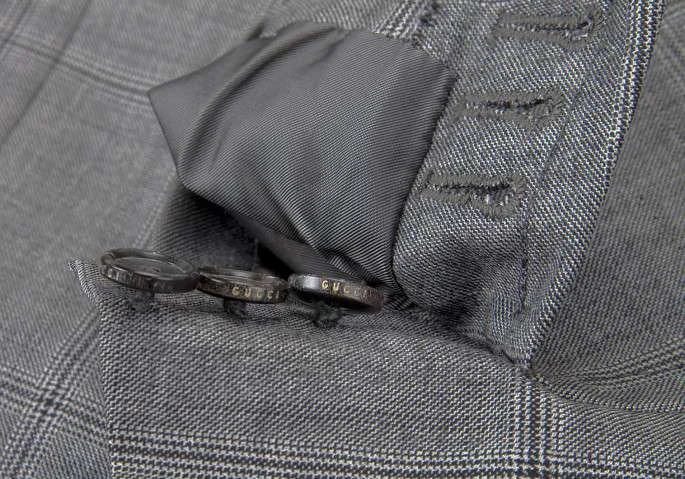 衿裏着用跡有りです(写真参照)。一番上のボタンが既製のものではありません。裏地背中に薄シミあり(写真ペン先参照)。全体的には、ほつれ等なくいい状態です。