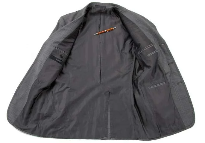 【SALE】グッチGUCCI 格子柄デザインウールジャケット グレー48
