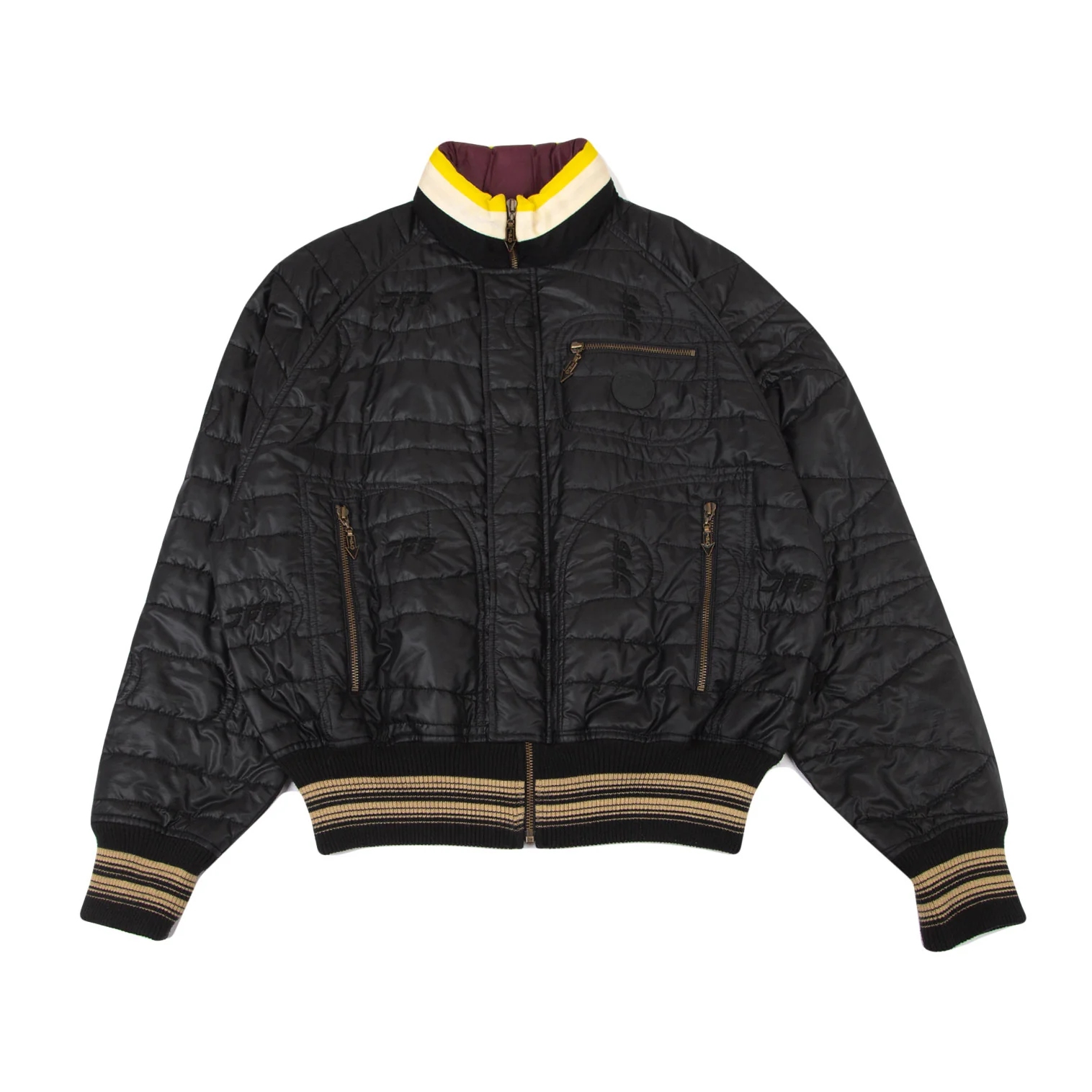 ジャンポールゴルチエJean Paul GAULTIER PARIS デザインキルティングナイロン中綿ジャケット 黒48