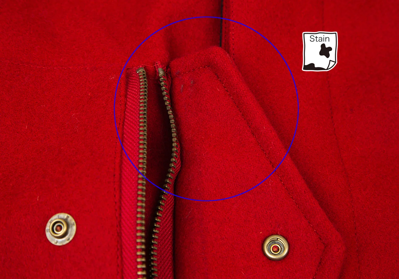 ポケットフラップ裏に薄汚れがあります(写真参照)。その他に目立ったシミ、汚れ、ほつれ等なくいい状態です。クリーニング済み
