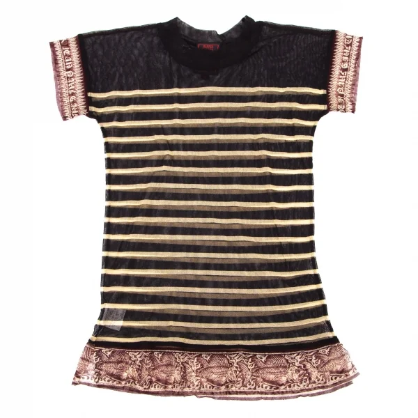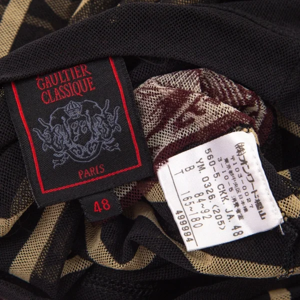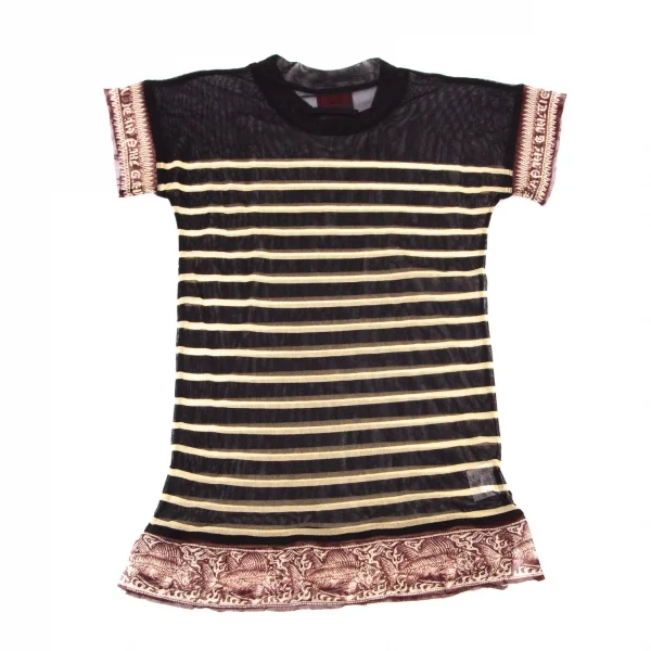 ジャンポールゴルチエ クラシックJean Paul GAULTIER CLASSIQUE ボーダーパワーネットTシャツ 黒オフ48