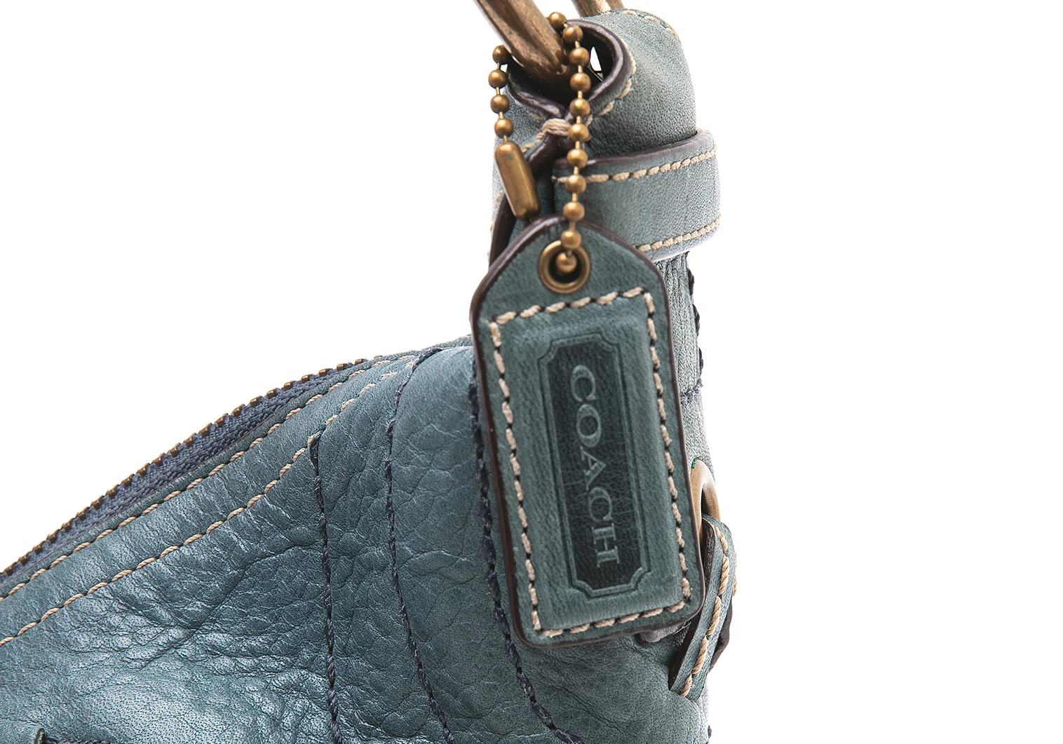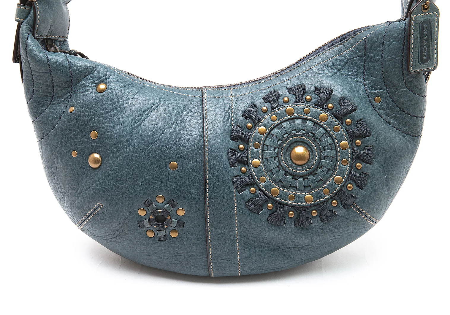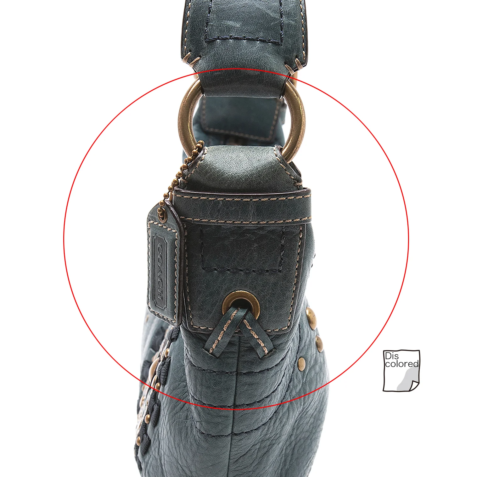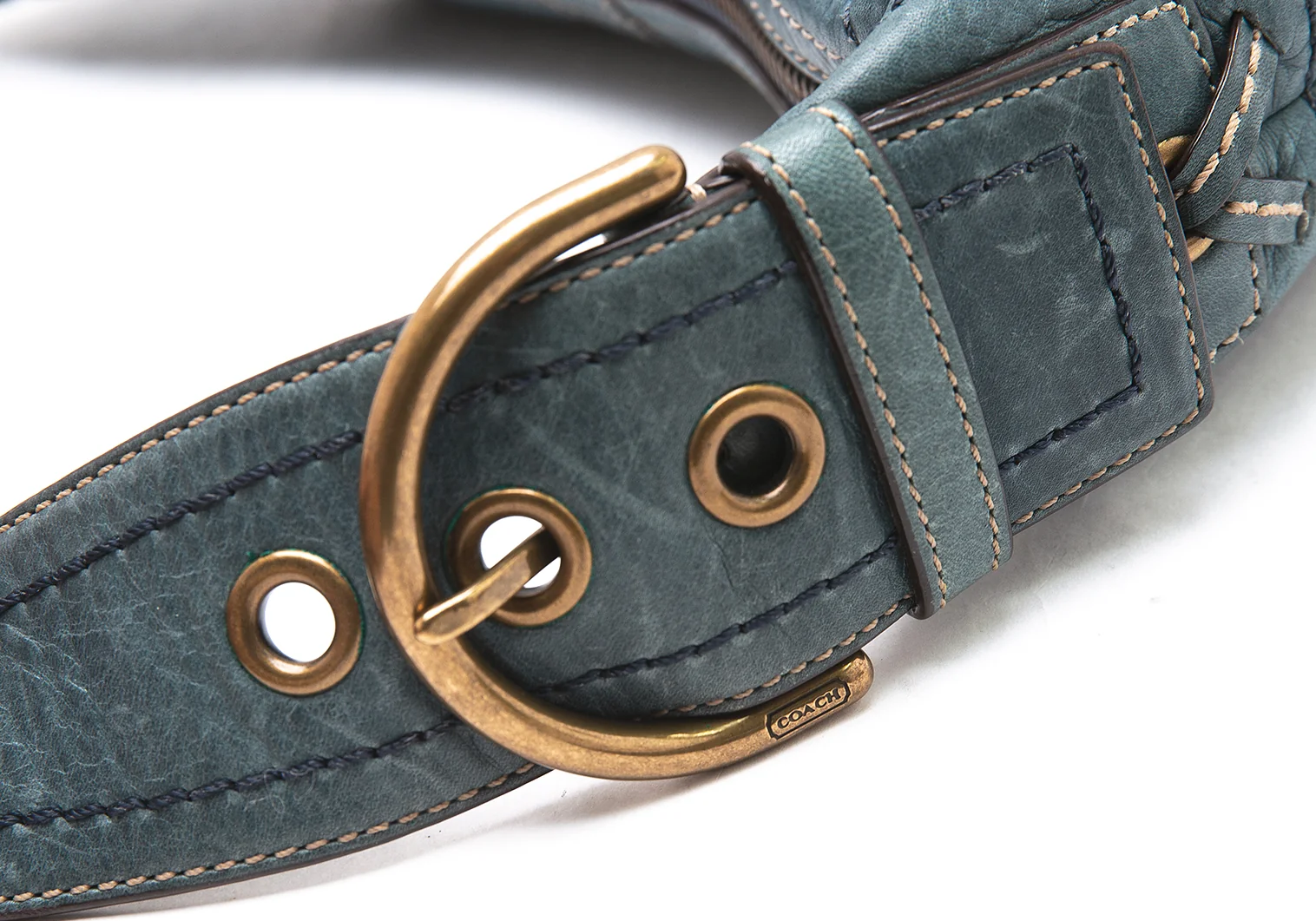 コーチCOACH スタッズ編み込みデザインレザーショルダーバッグ 青