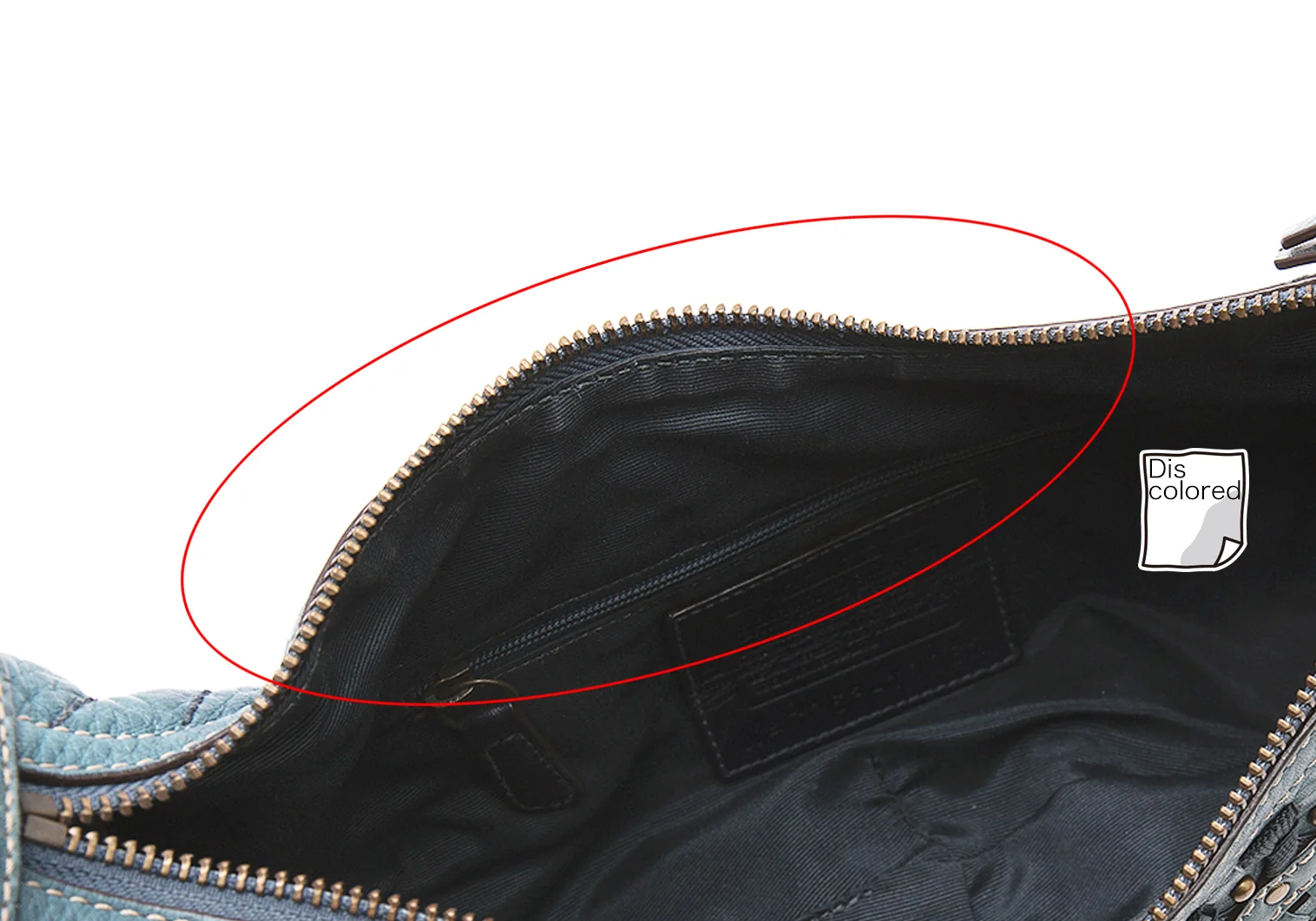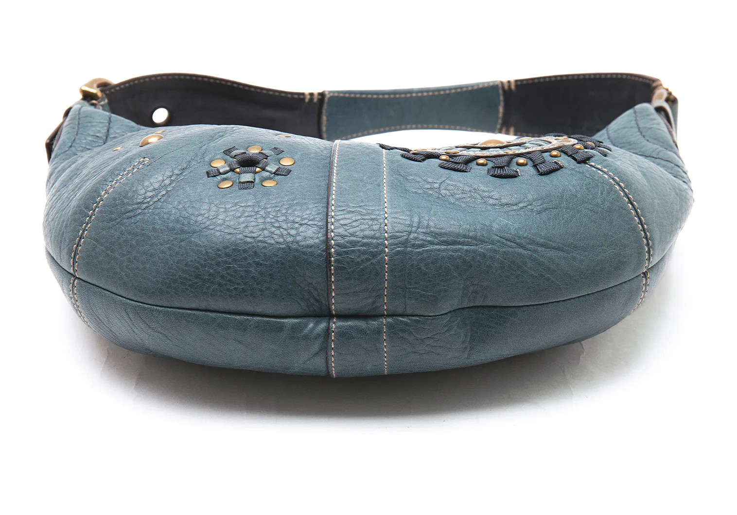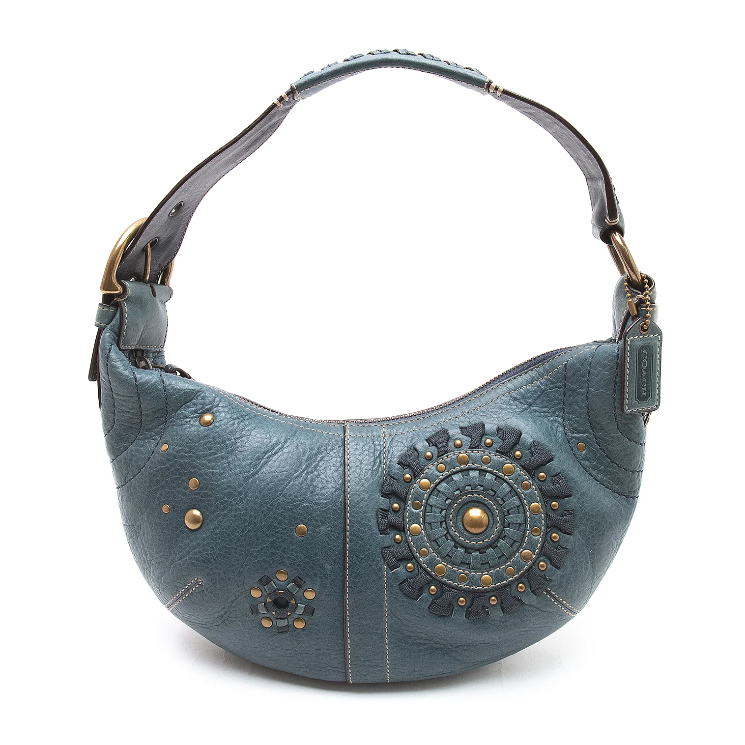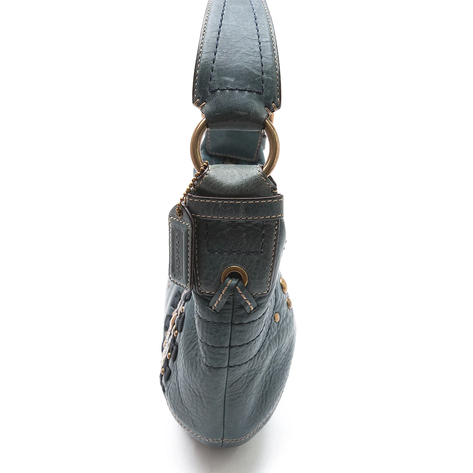 コーチCOACH スタッズ編み込みデザインレザーショルダーバッグ 青