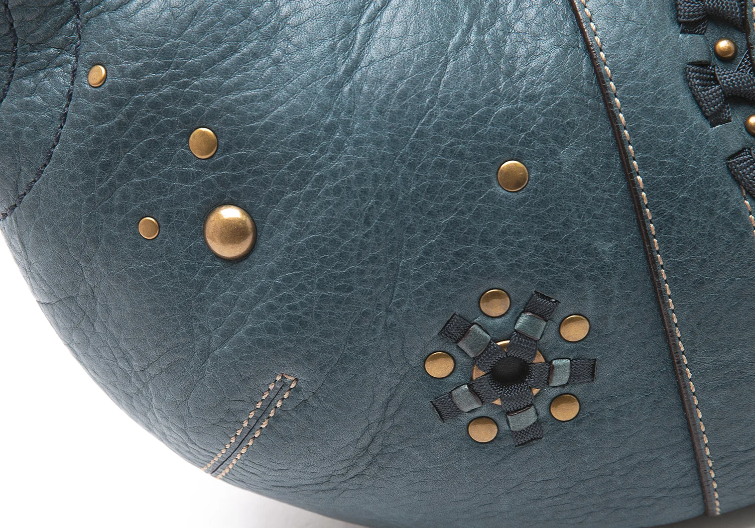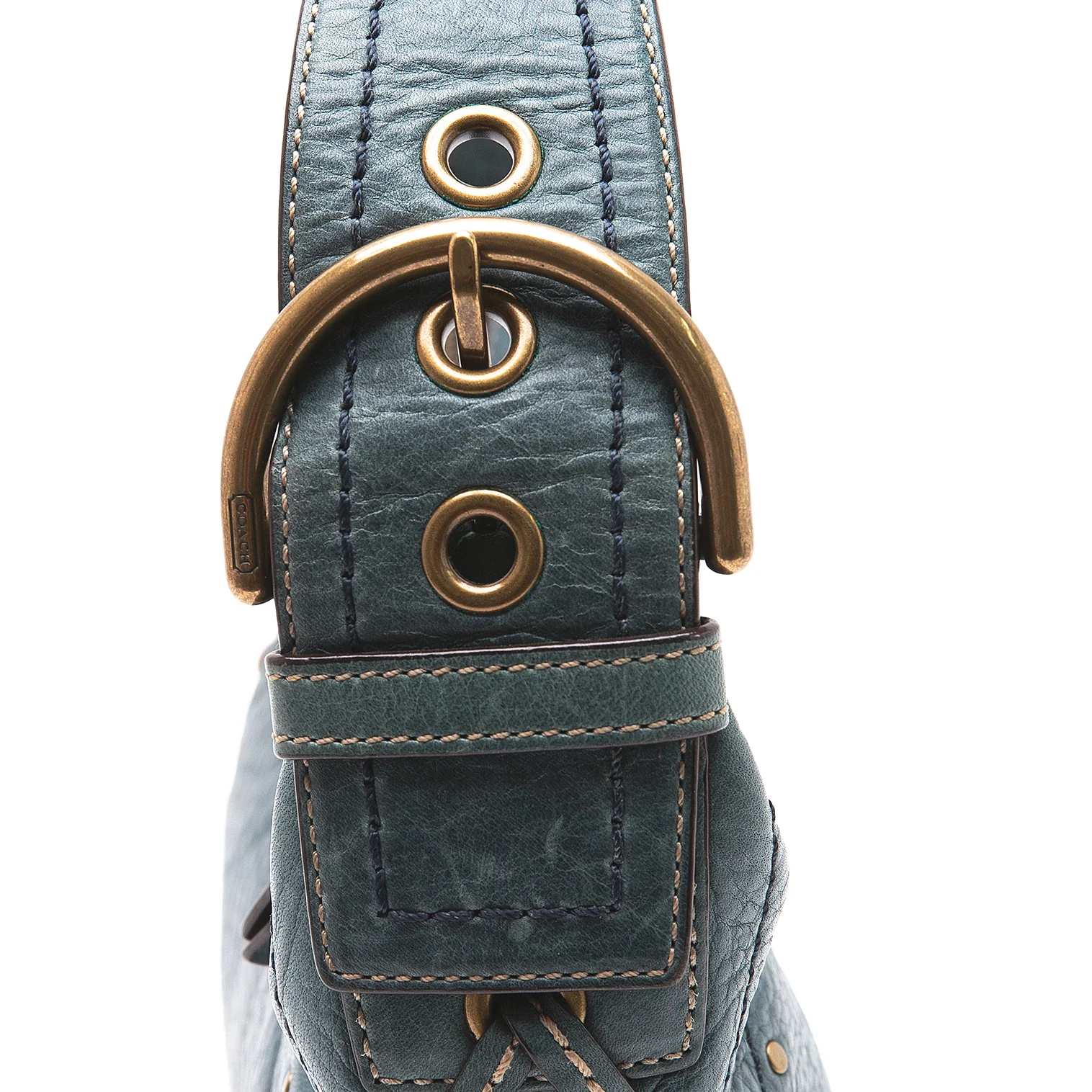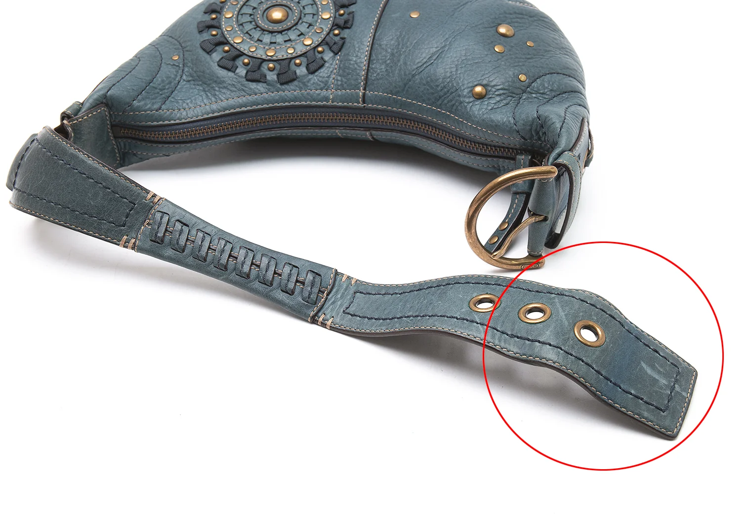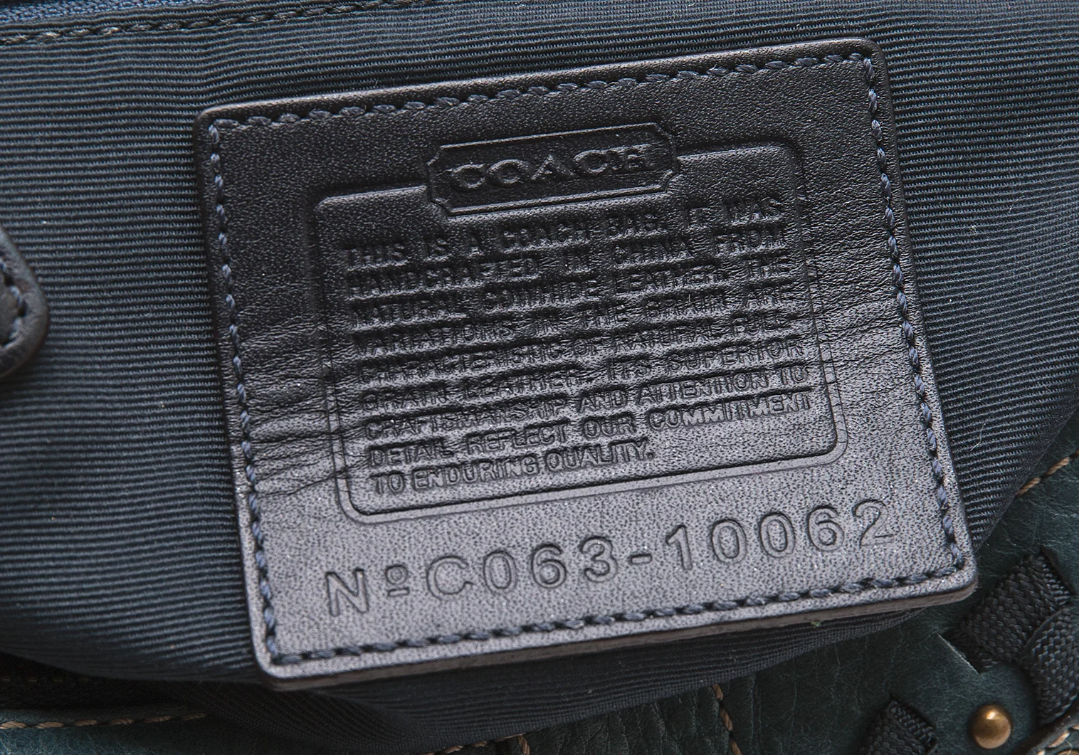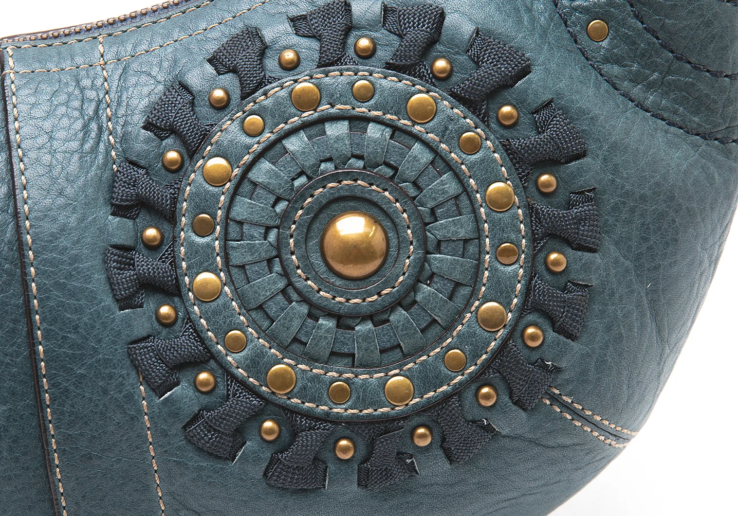 コーチCOACH スタッズ編み込みデザインレザーショルダーバッグ 青