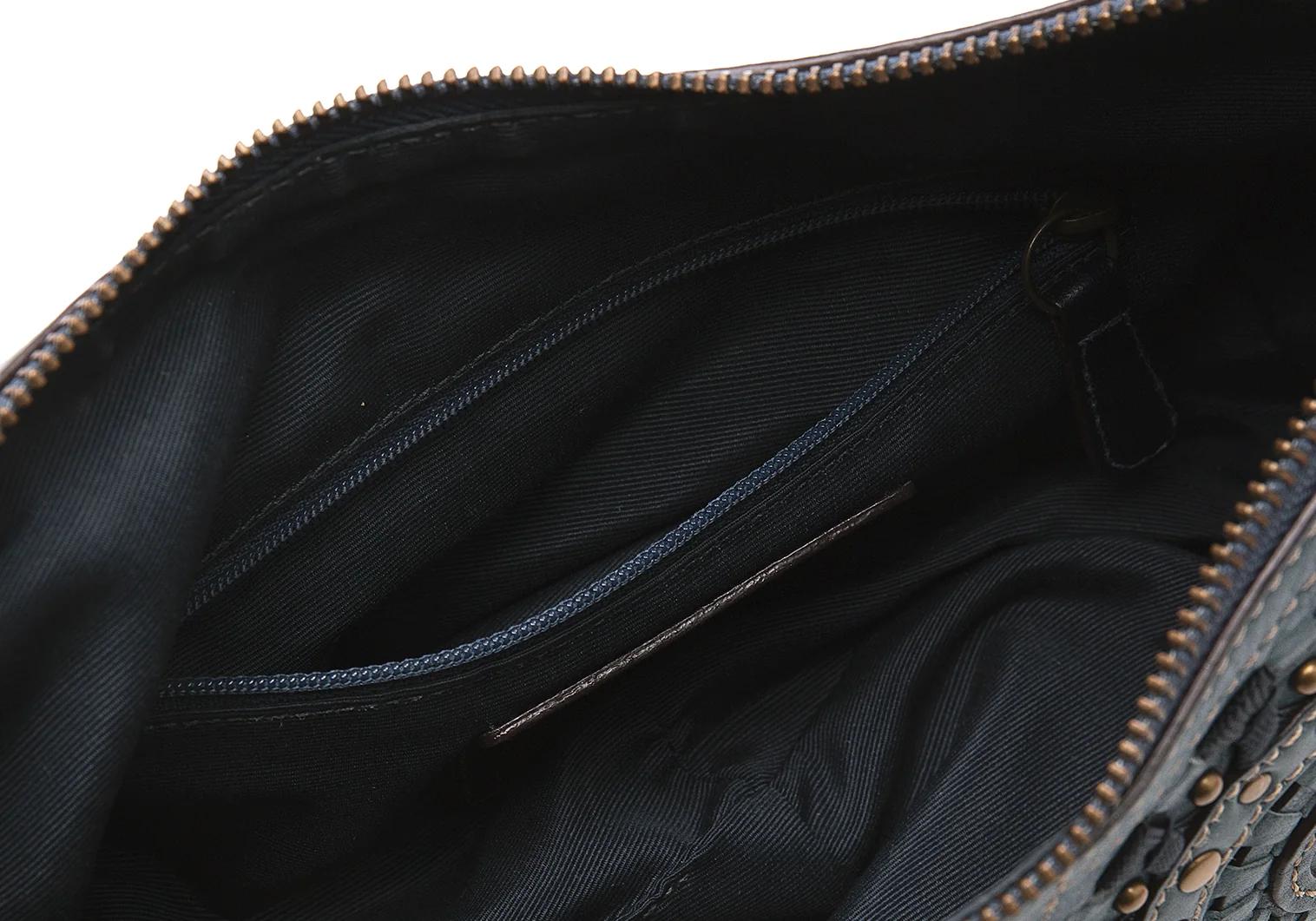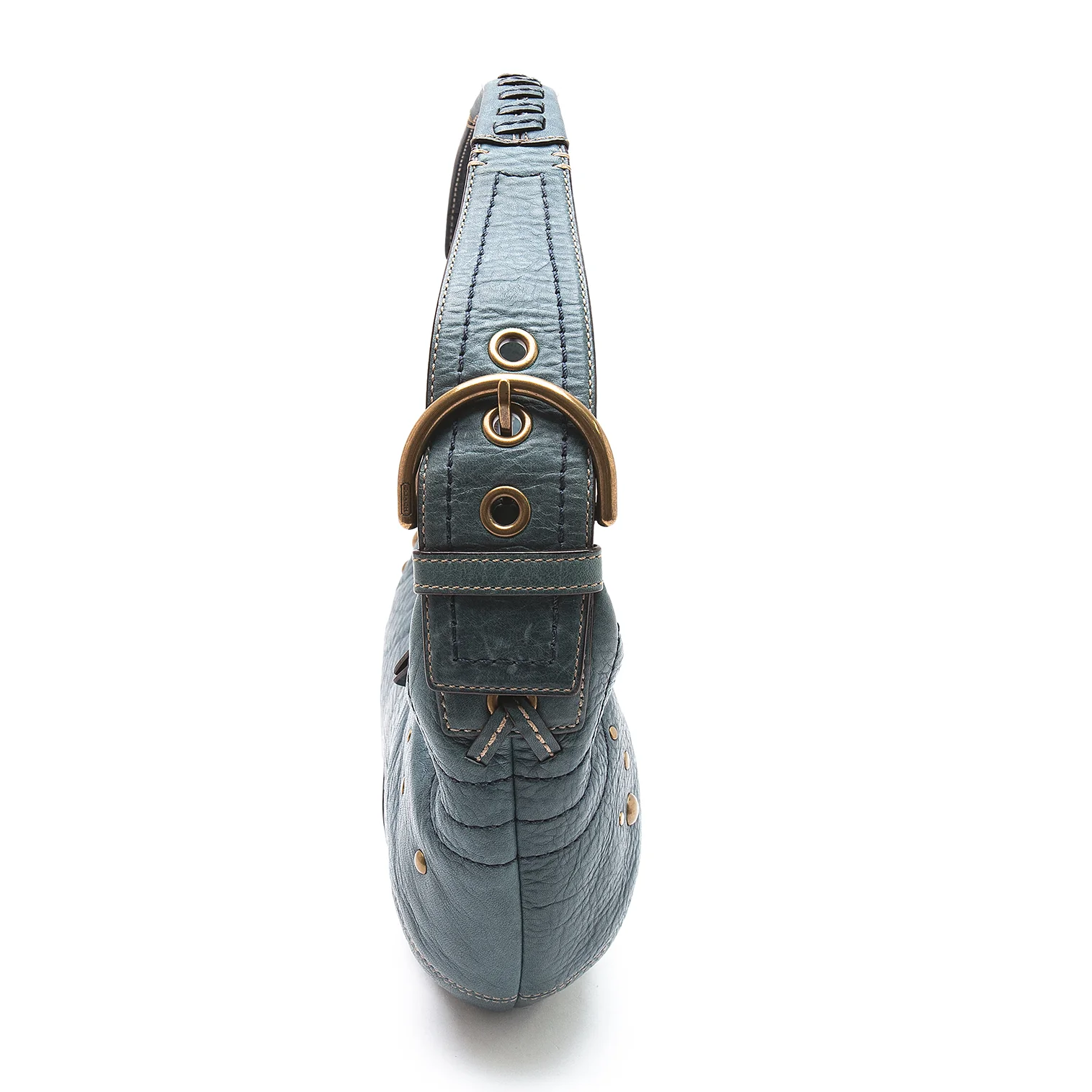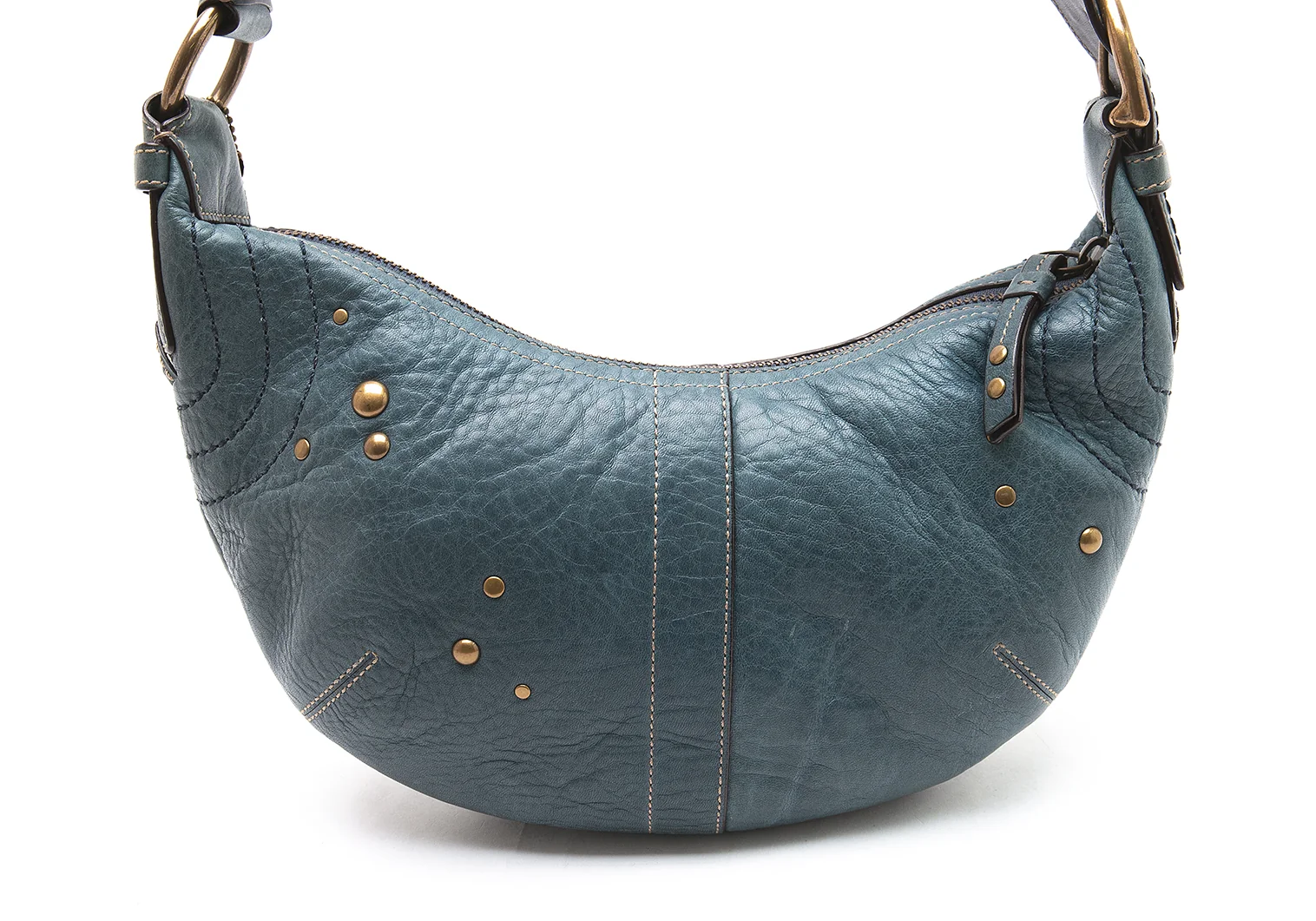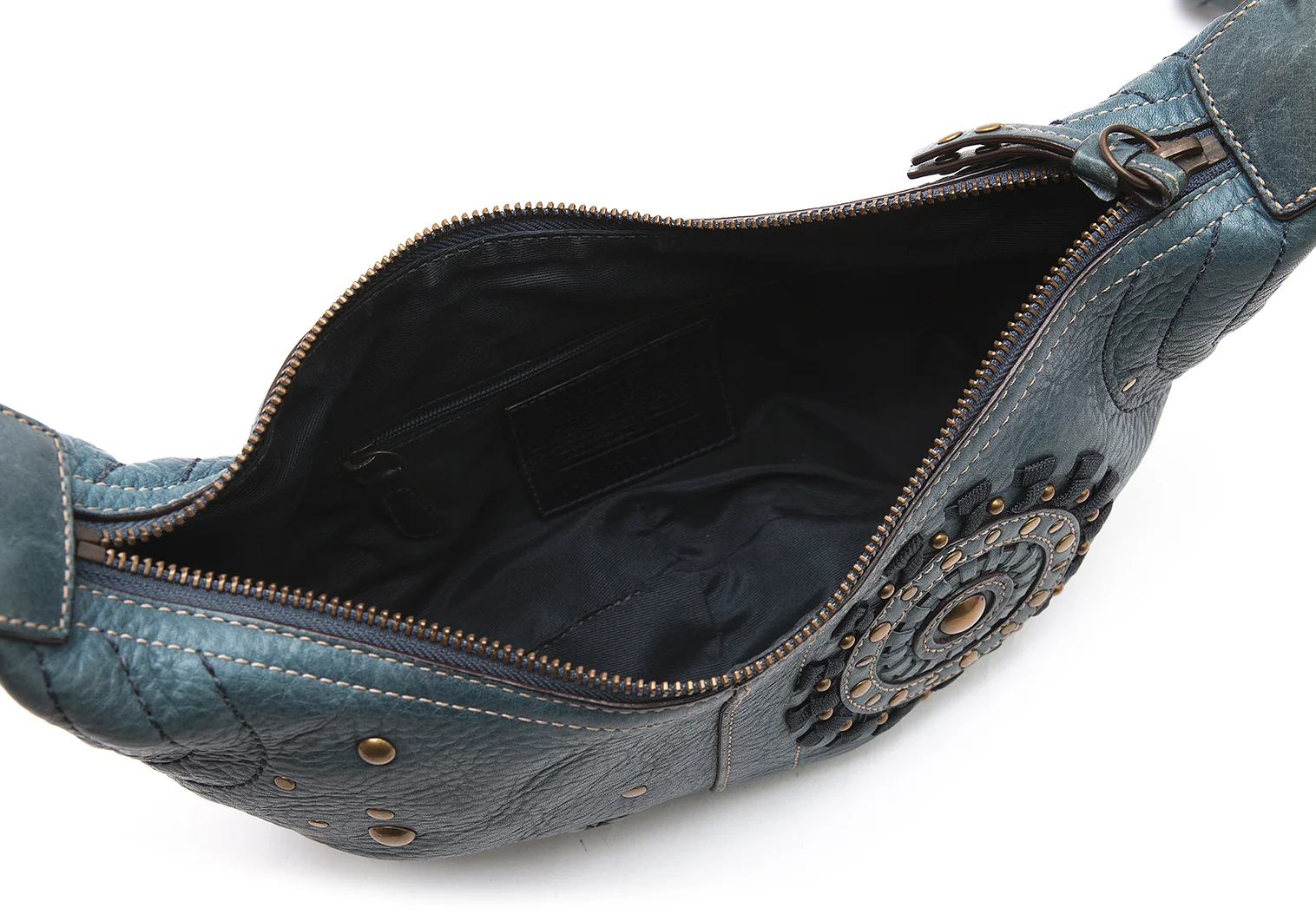 コーチCOACH スタッズ編み込みデザインレザーショルダーバッグ 青