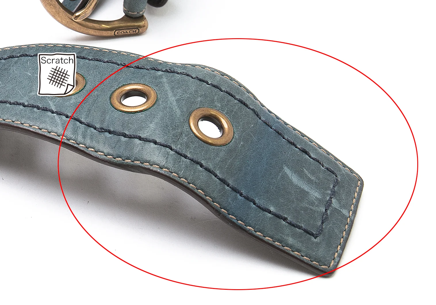 サイド少し変色、ベルト先傷、内側色褪せがあります(写真参照)。その他目立った傷や汚れなどなく、まだまだご使用いただけるお品です。