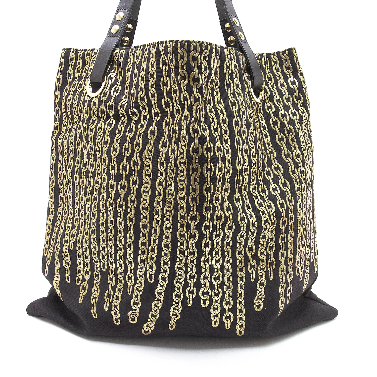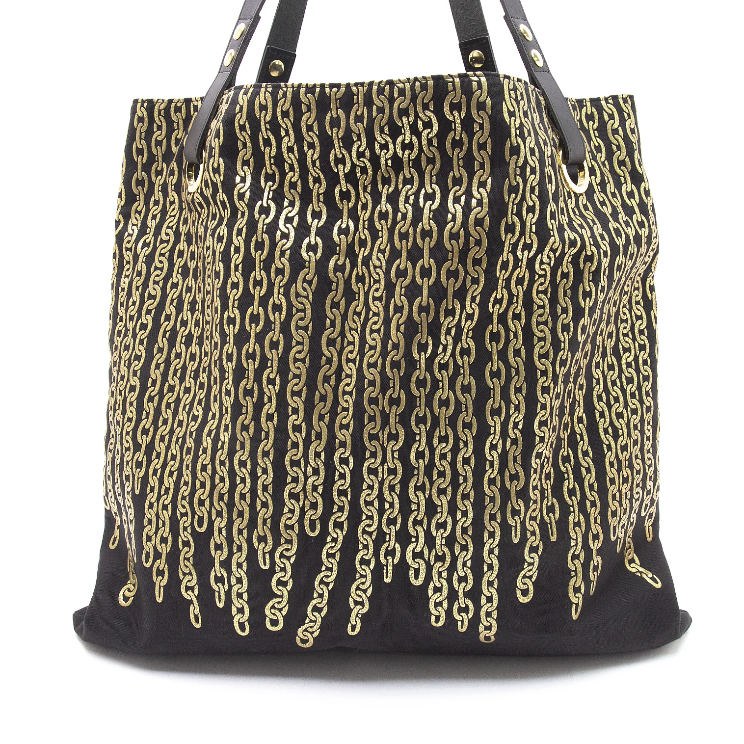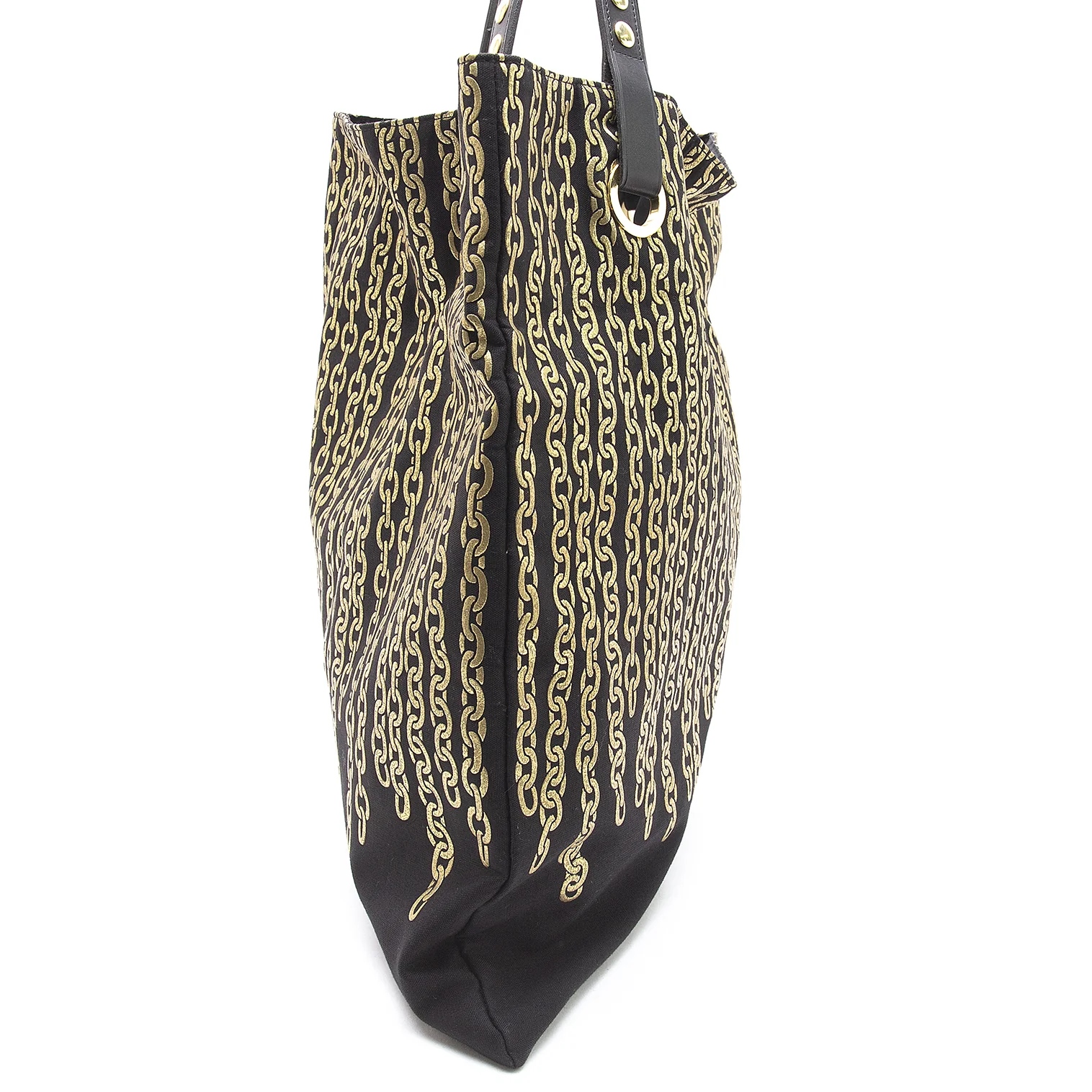 プリーツプリーズPLEATS PLEASE ゴールドチェーンプリントトートバッグ 黒ゴールド