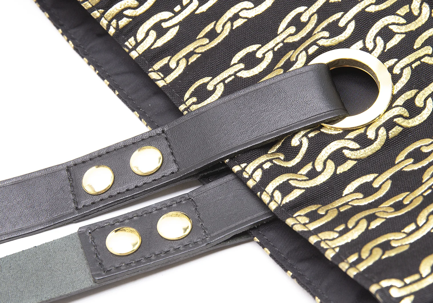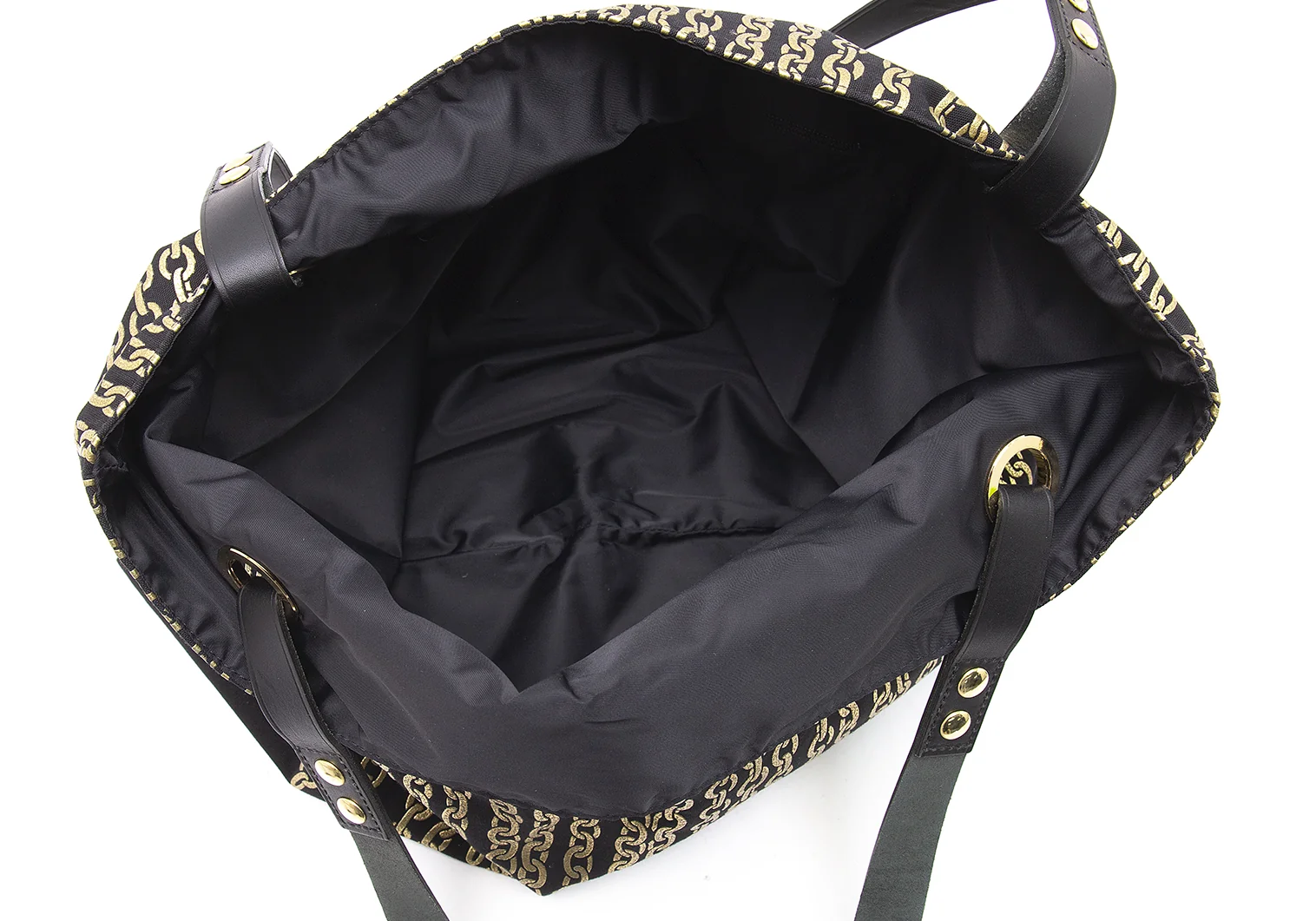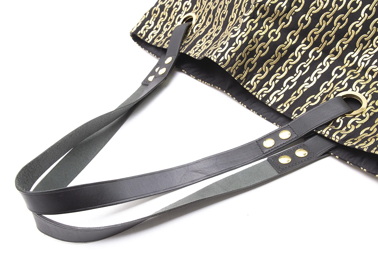 プリーツプリーズPLEATS PLEASE ゴールドチェーンプリントトートバッグ 黒ゴールド