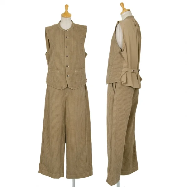 45R ウインドウペンチェックサイドシンチワイドパンツ ベージュ2