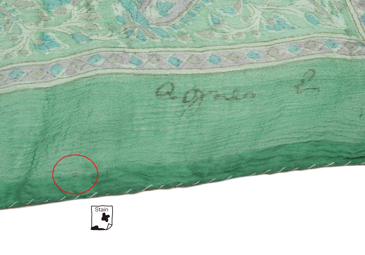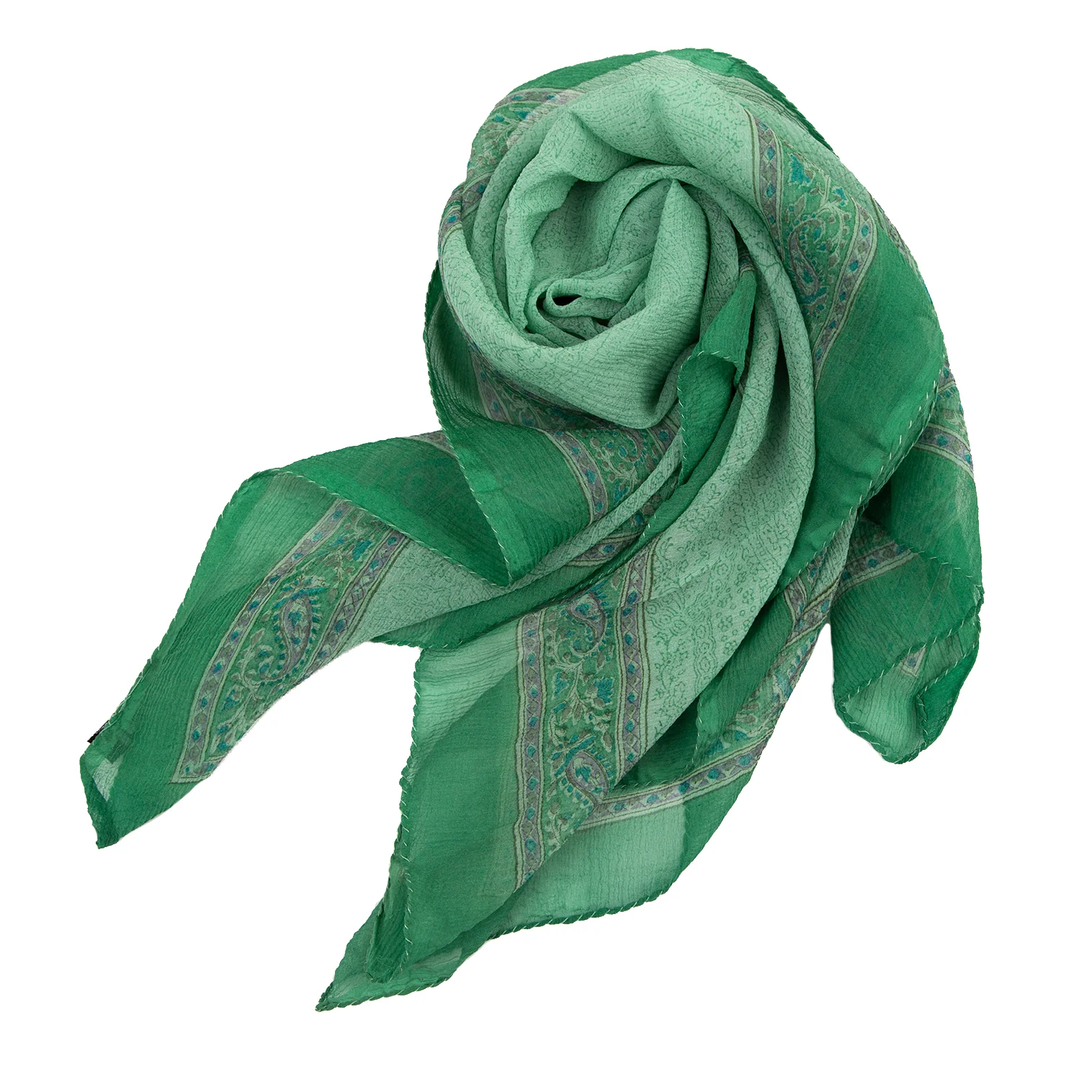 アニエスベーagnes b. インドシルクペイズリースカーフ 緑