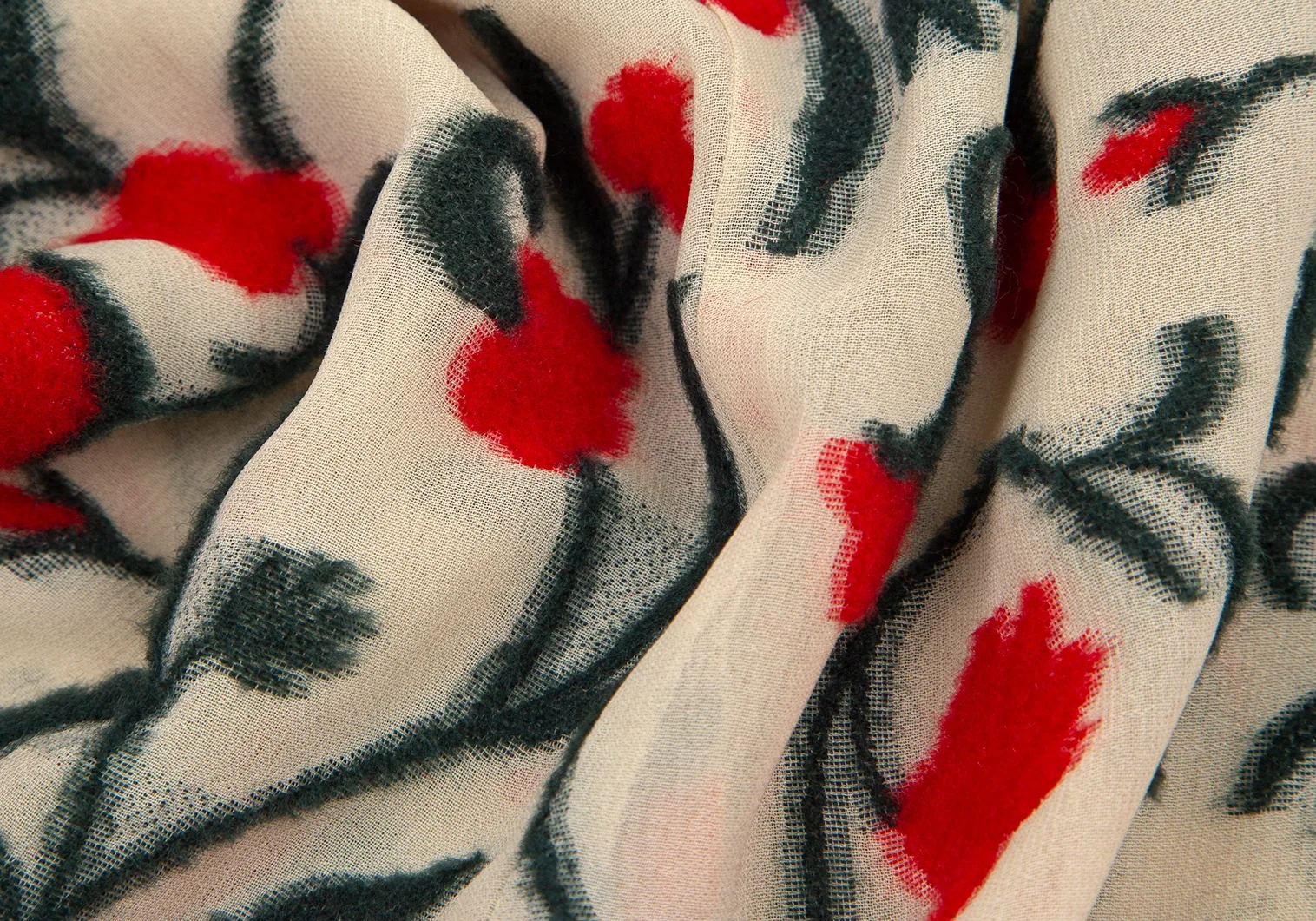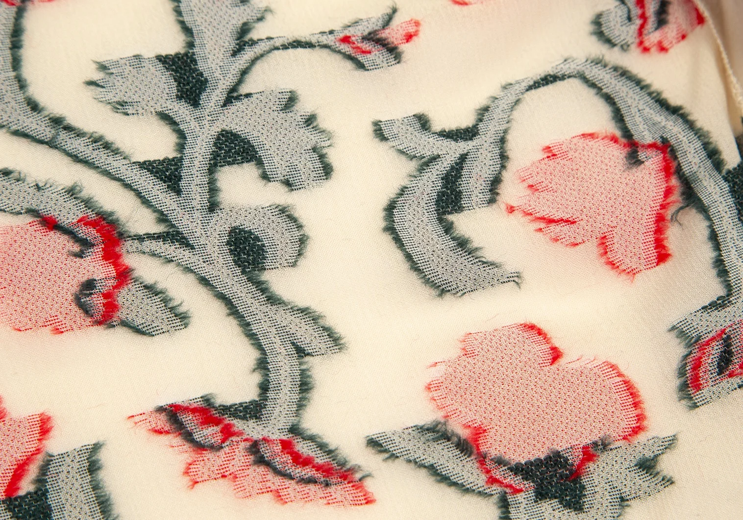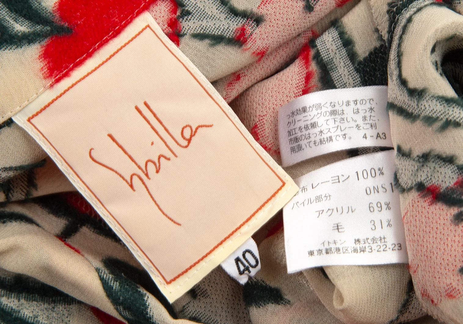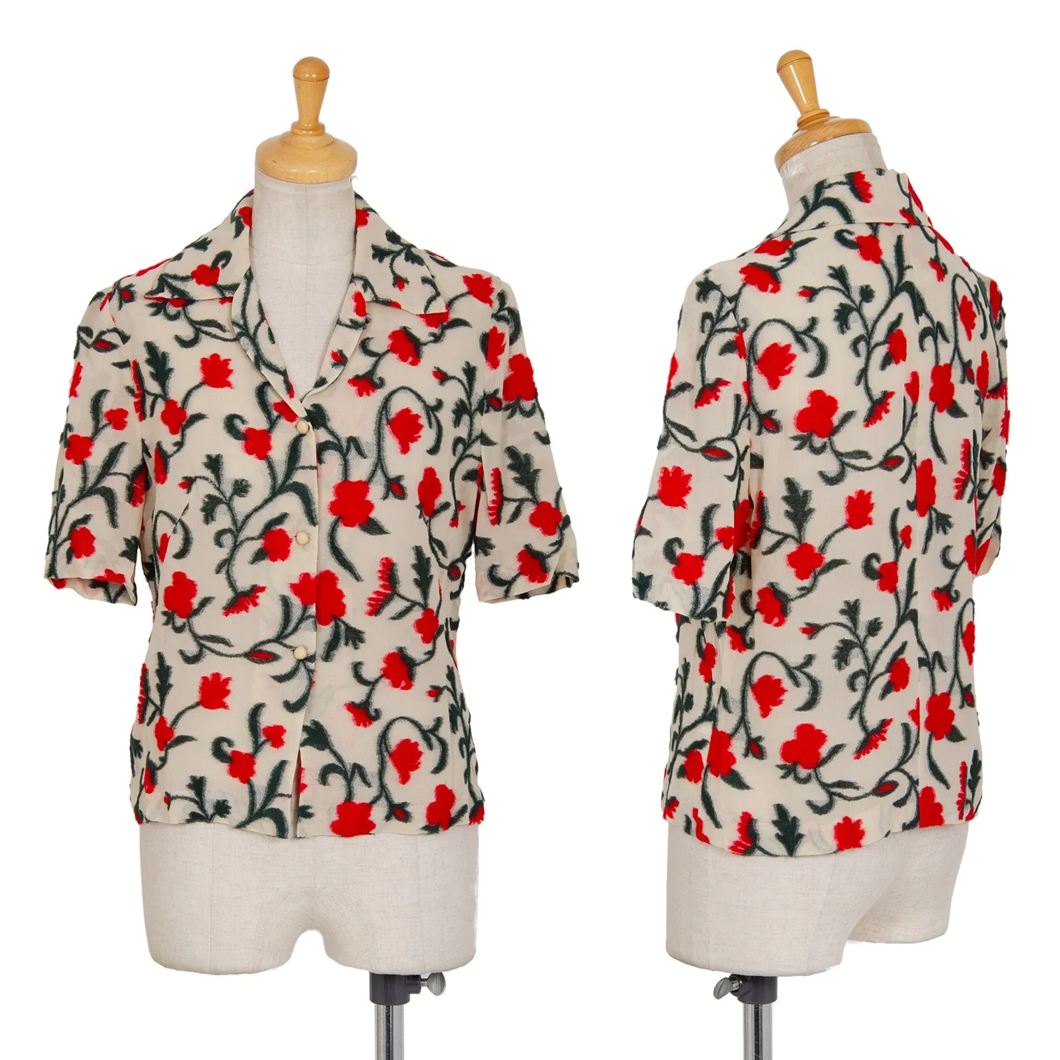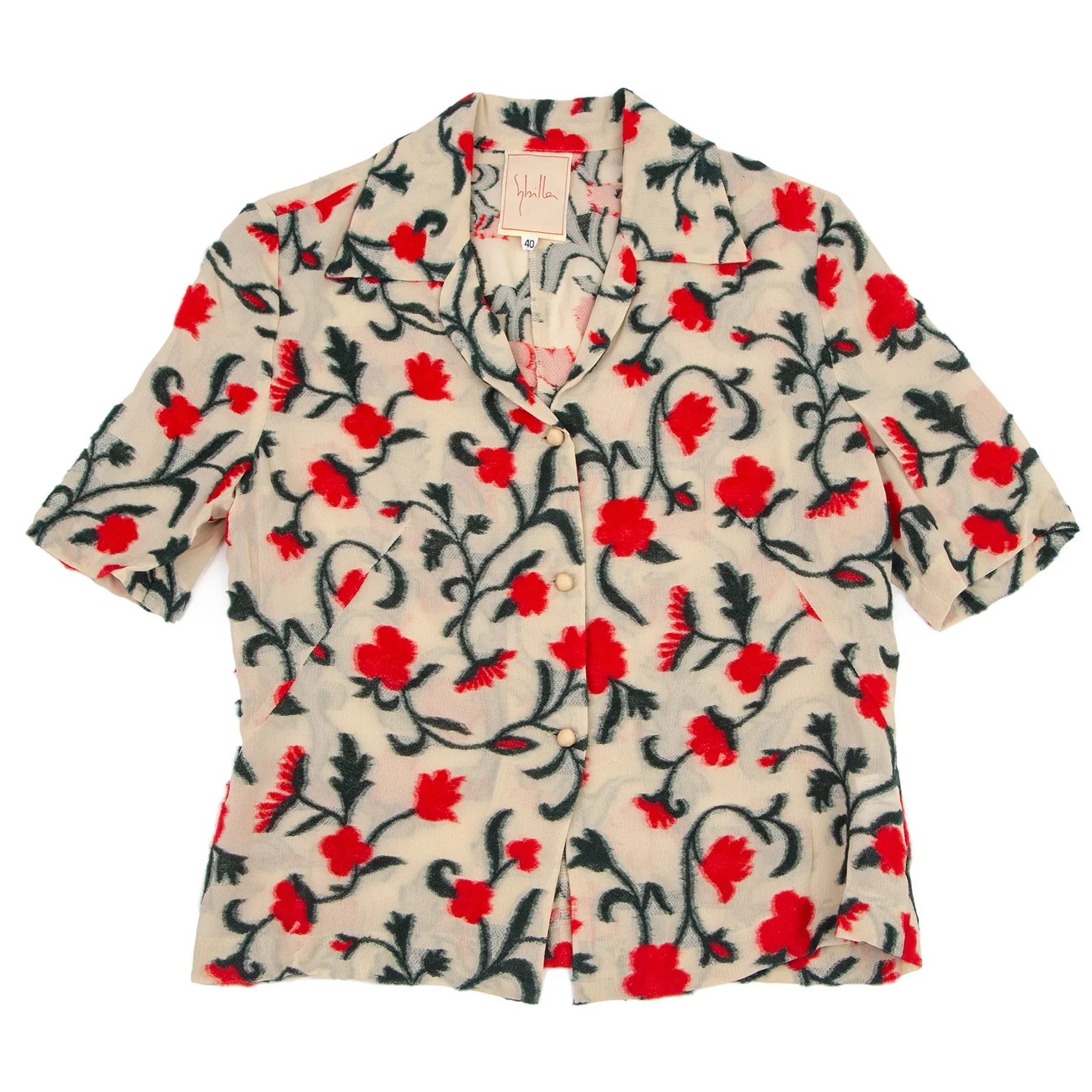 シビラSybilla フラワーパイルジャガード半袖ジャケット ベージュ赤緑40