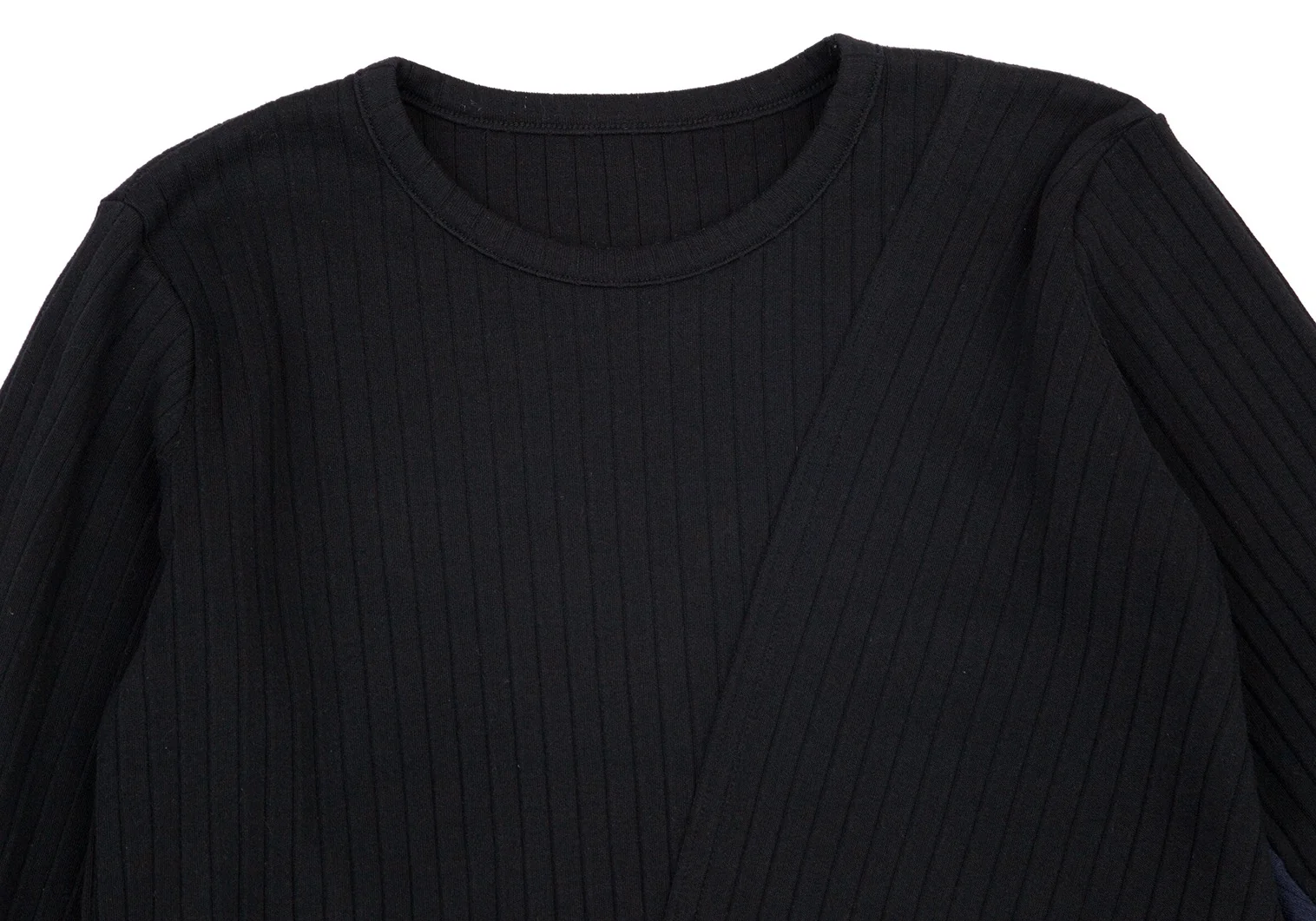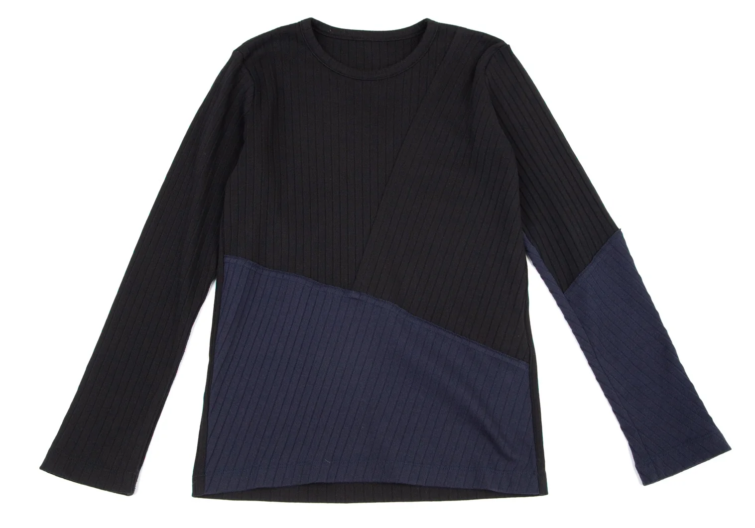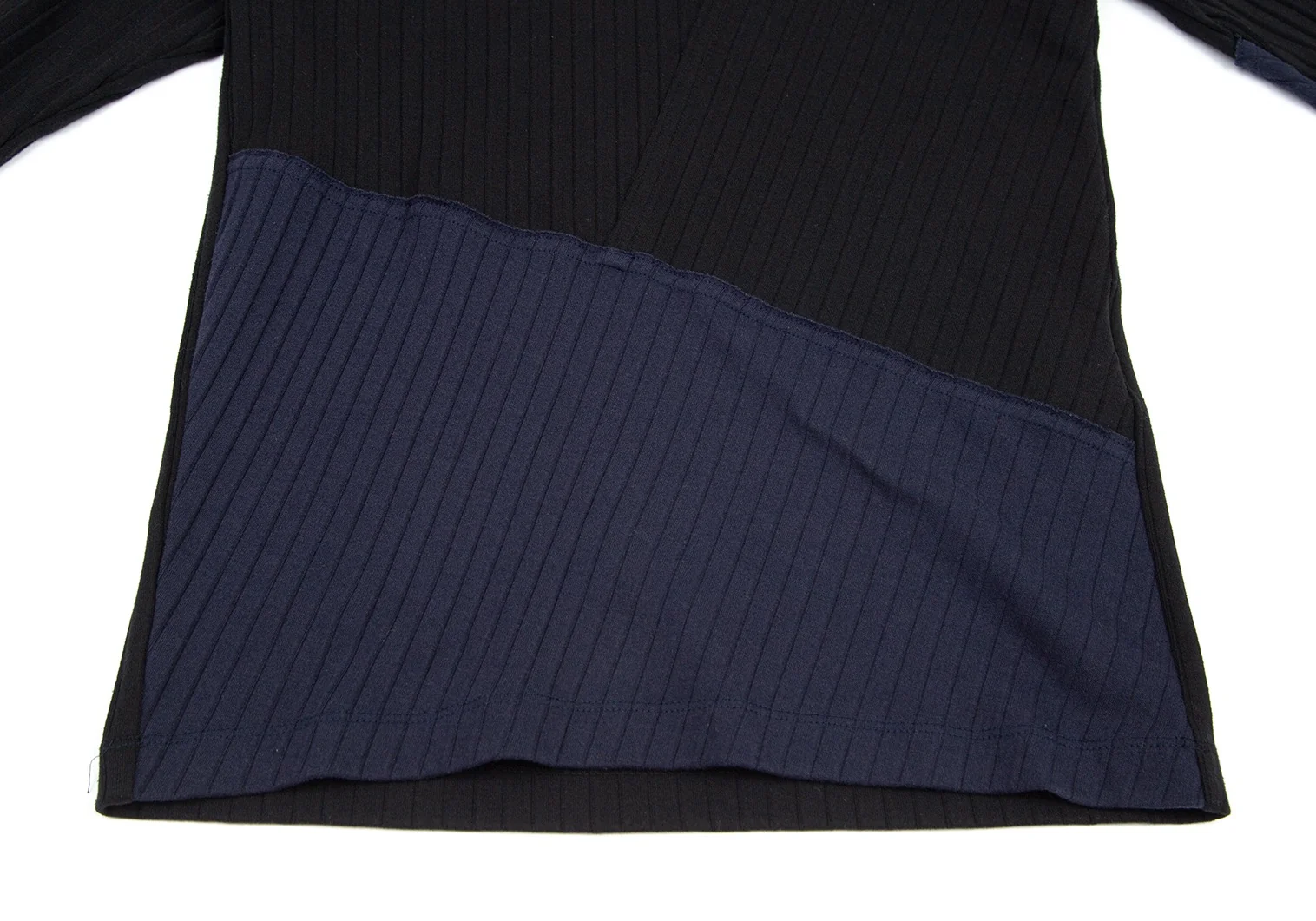 ワイズY's コットンポリ混パネル切替リブカットソー 黒紺2