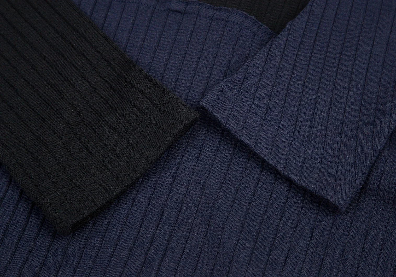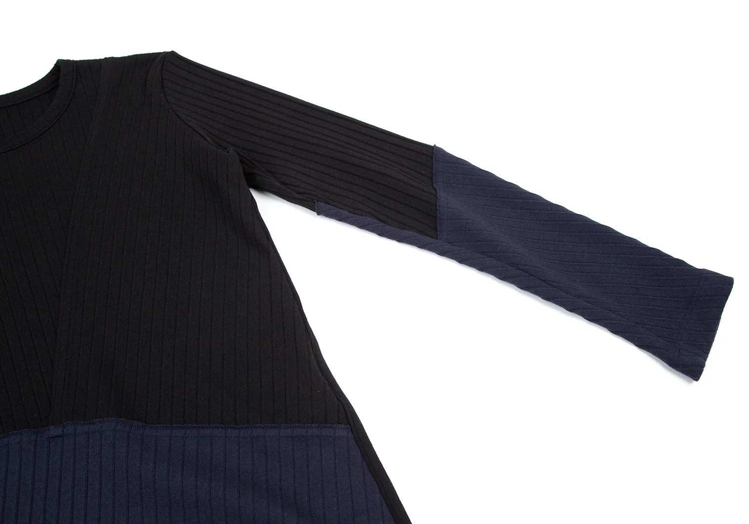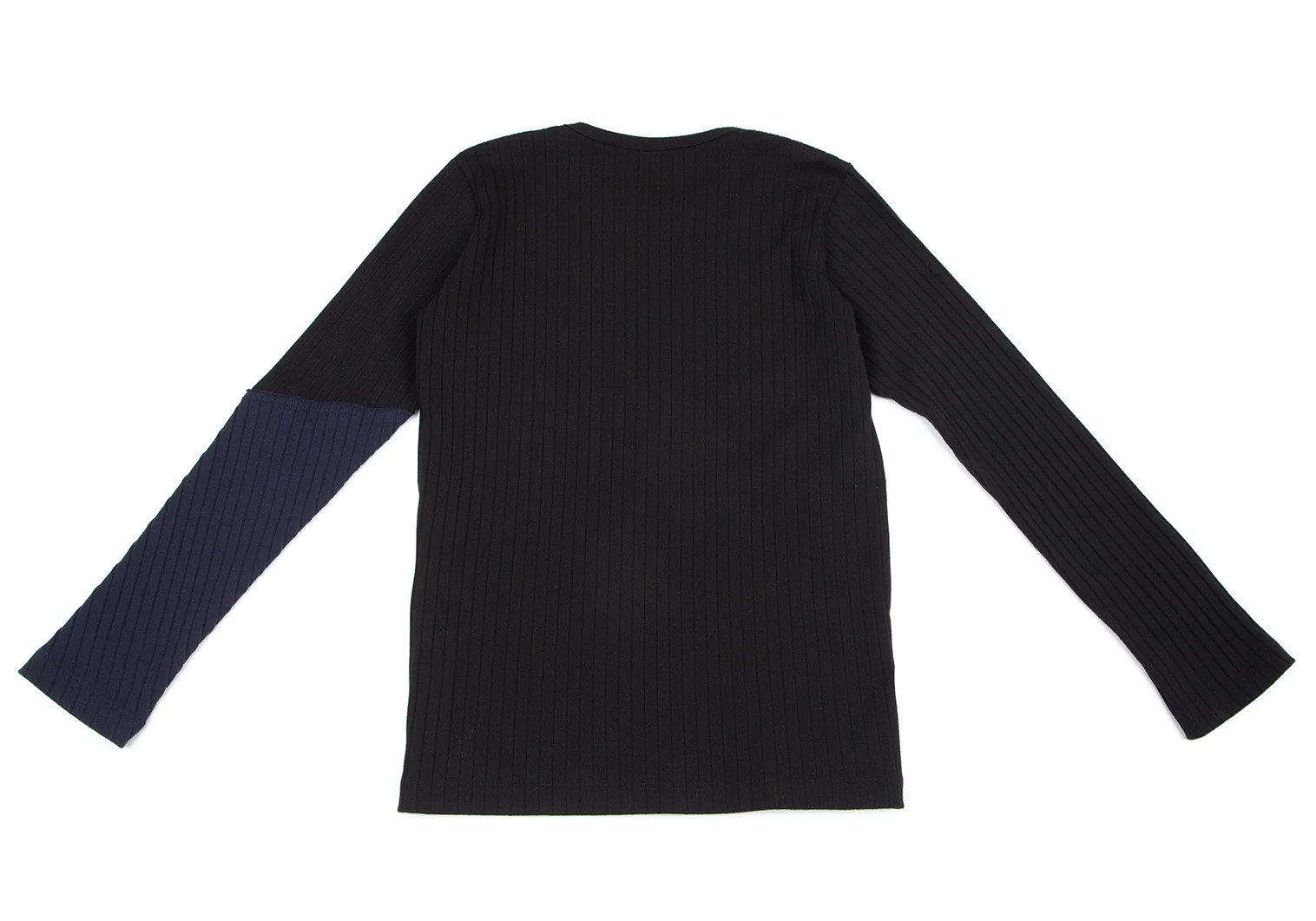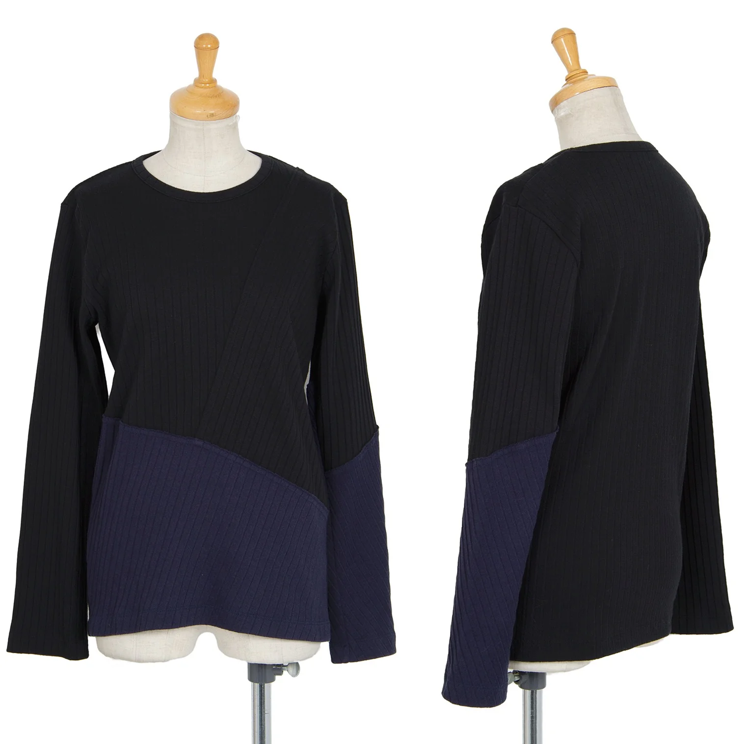 ワイズY's コットンポリ混パネル切替リブカットソー 黒紺2